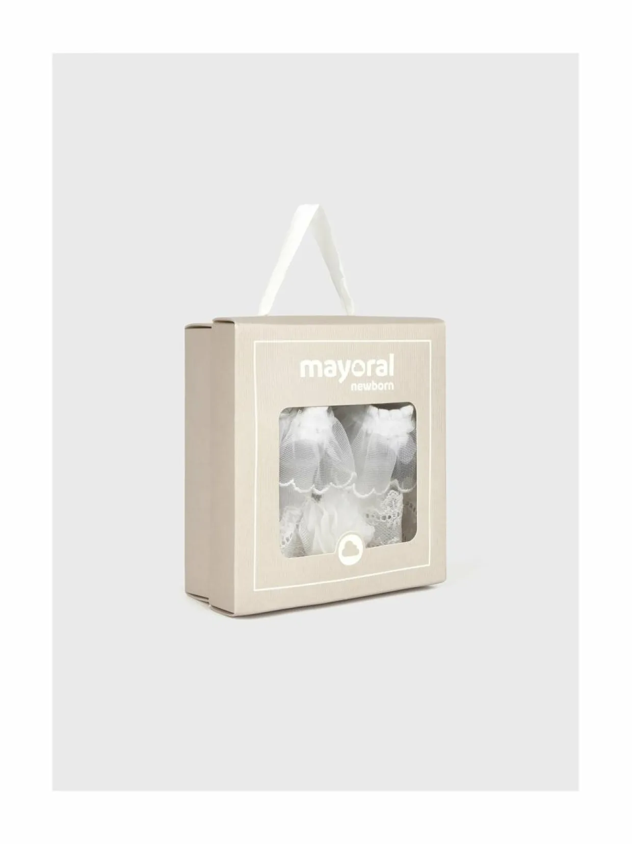 Materiaali72 % polyamidi, 20 % polyesteri, 8 % elastaani Hoito-ohjeetKäsinpesu. Ei valkaisua, eikä valkaisuaineita sisältäviä pesuaineita. Silitys matalalla lämpötilalla. Ei kemiallista pesua. ValmistusmaaKiina VäriWHITE 53 Avainsanatsukat, sukkasetti, hiuspanta, vauvasukat, lastensukat, lahjaidea, lahjapakkaus, Mayoral