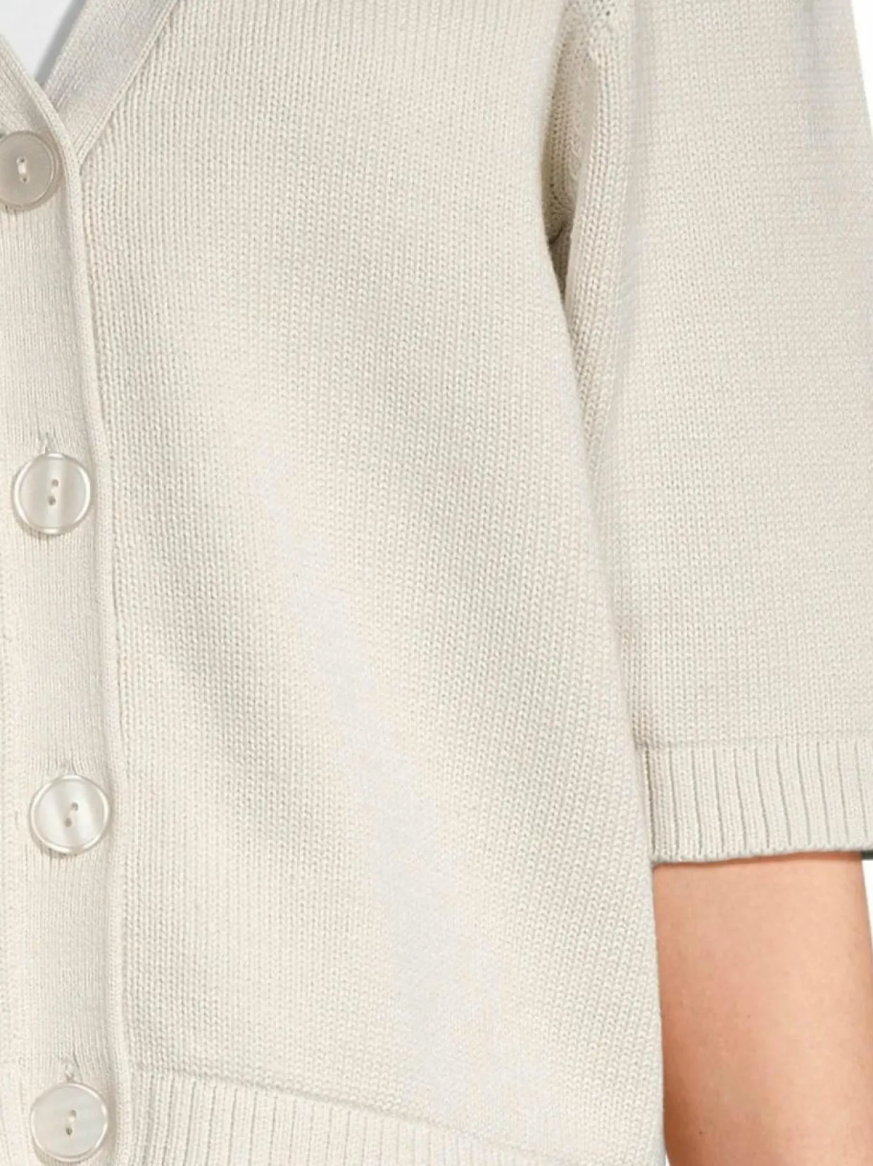 Mukava ja elegantti lyhyt neuletakki Stockmannin omalta käyttövaatemerkiltä NOOM. V-kauluksinen napitettava neuletakki on valmistettu pehmeästä luomupuuvillasta ja suunniteltu normaaliin istuvuuteen.