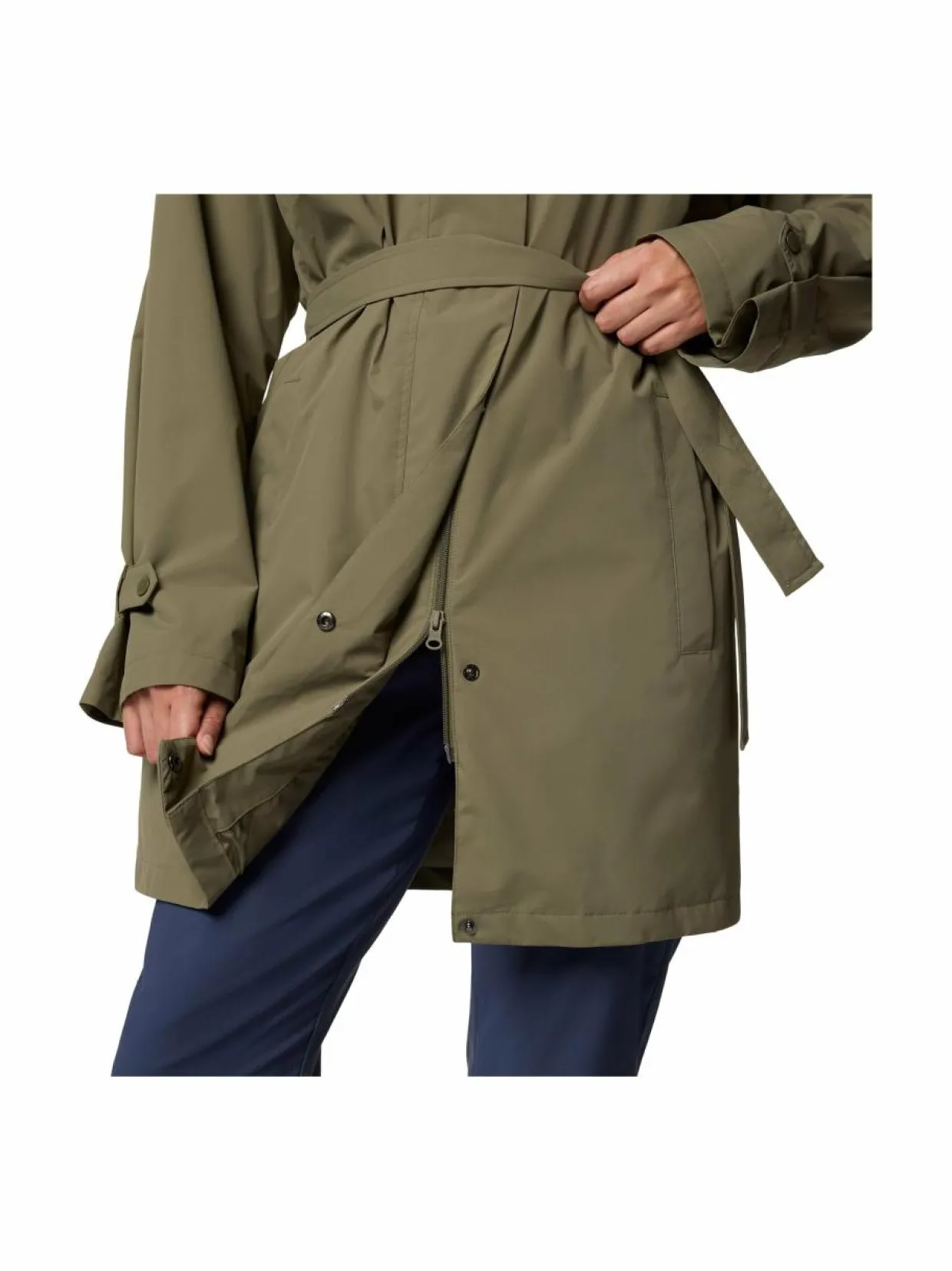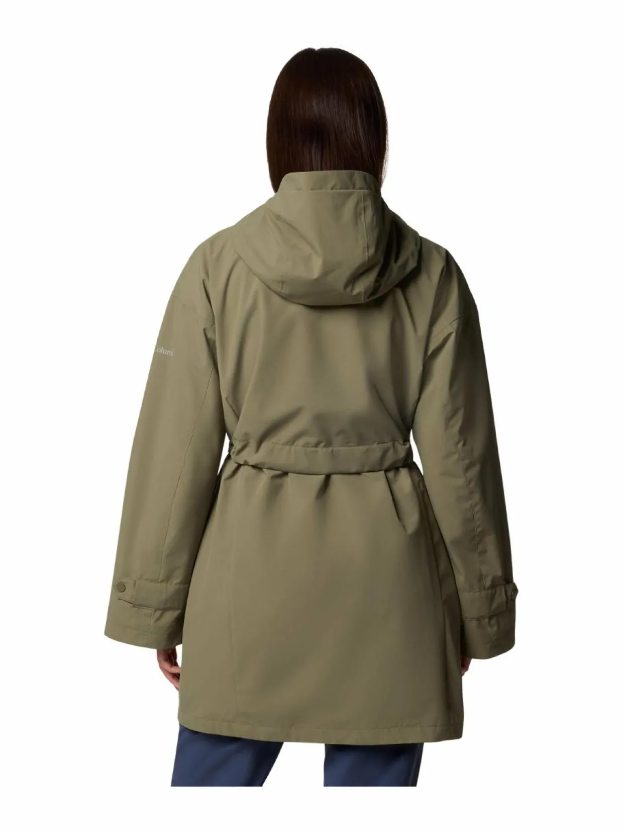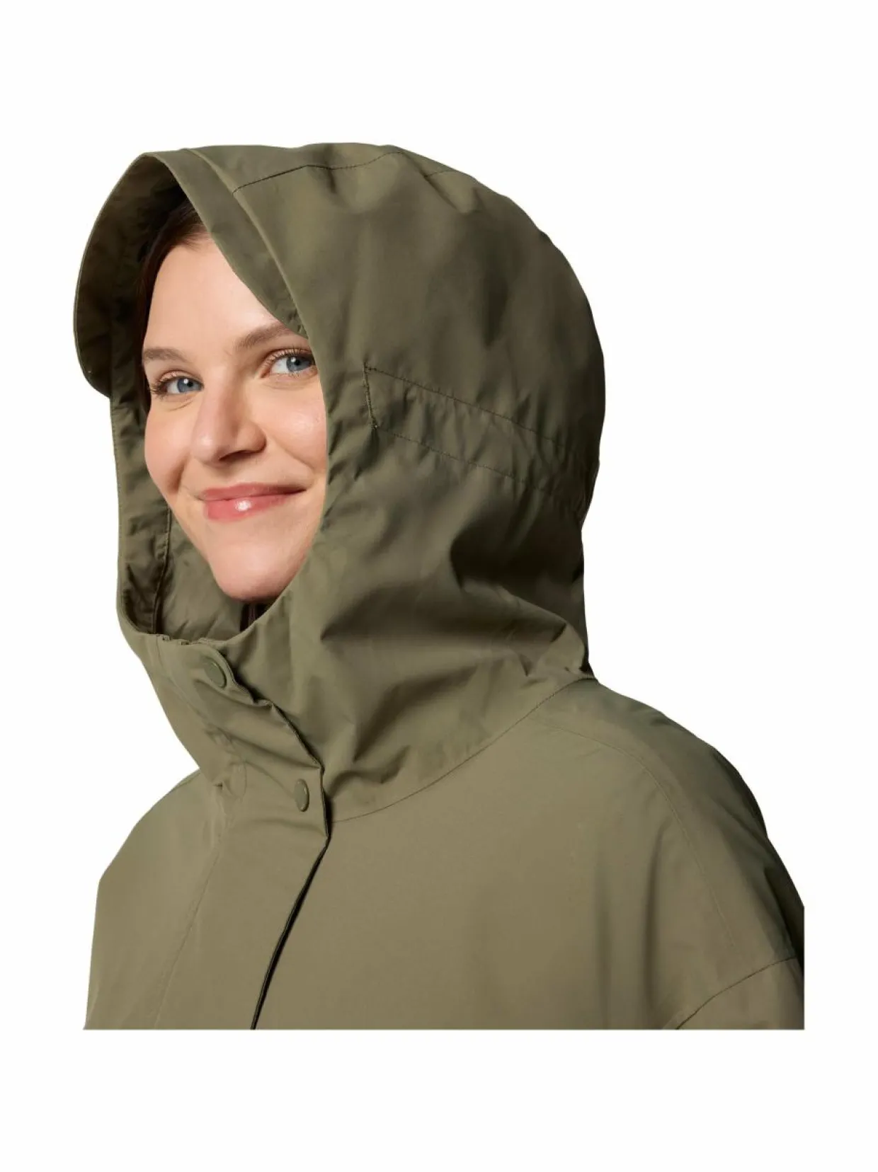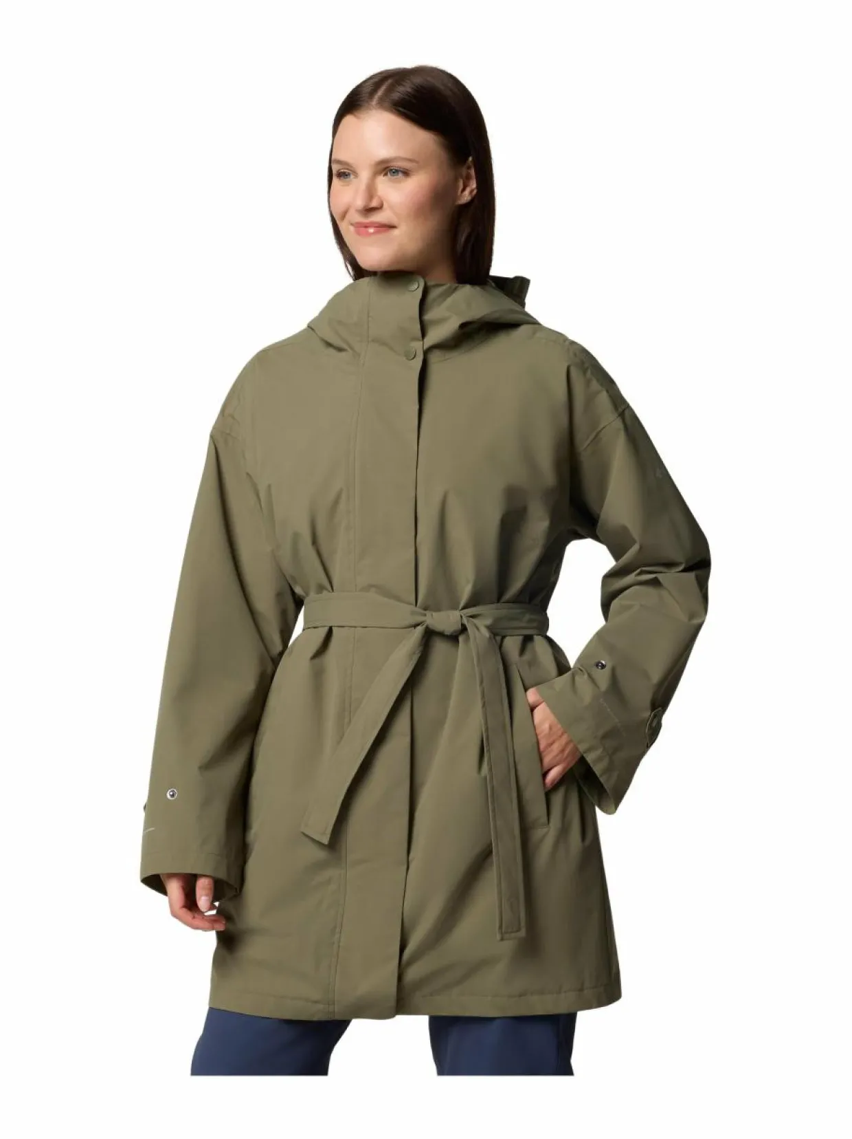 Columbia HERE AND THERE™ III -takki on vedenpitävä ja hengittävä takki, joka sopii täydellisesti sateiseen säähän. Takissa on kiinteä huppu ja korkea kaulus, joka suojaa sateelta ja tuulelta. Takissa on myös vyö, jolla voit säätää istuvuutta. Takissa on kaksi taskua, kaksisuuntainen piilovetoketju ja painonapeilla suljettava tuulilista. Takki on suunniteltu mukavaksi ja käytännölliseksi, ja se sopii täydellisesti jokapäiväiseen käyttöön.