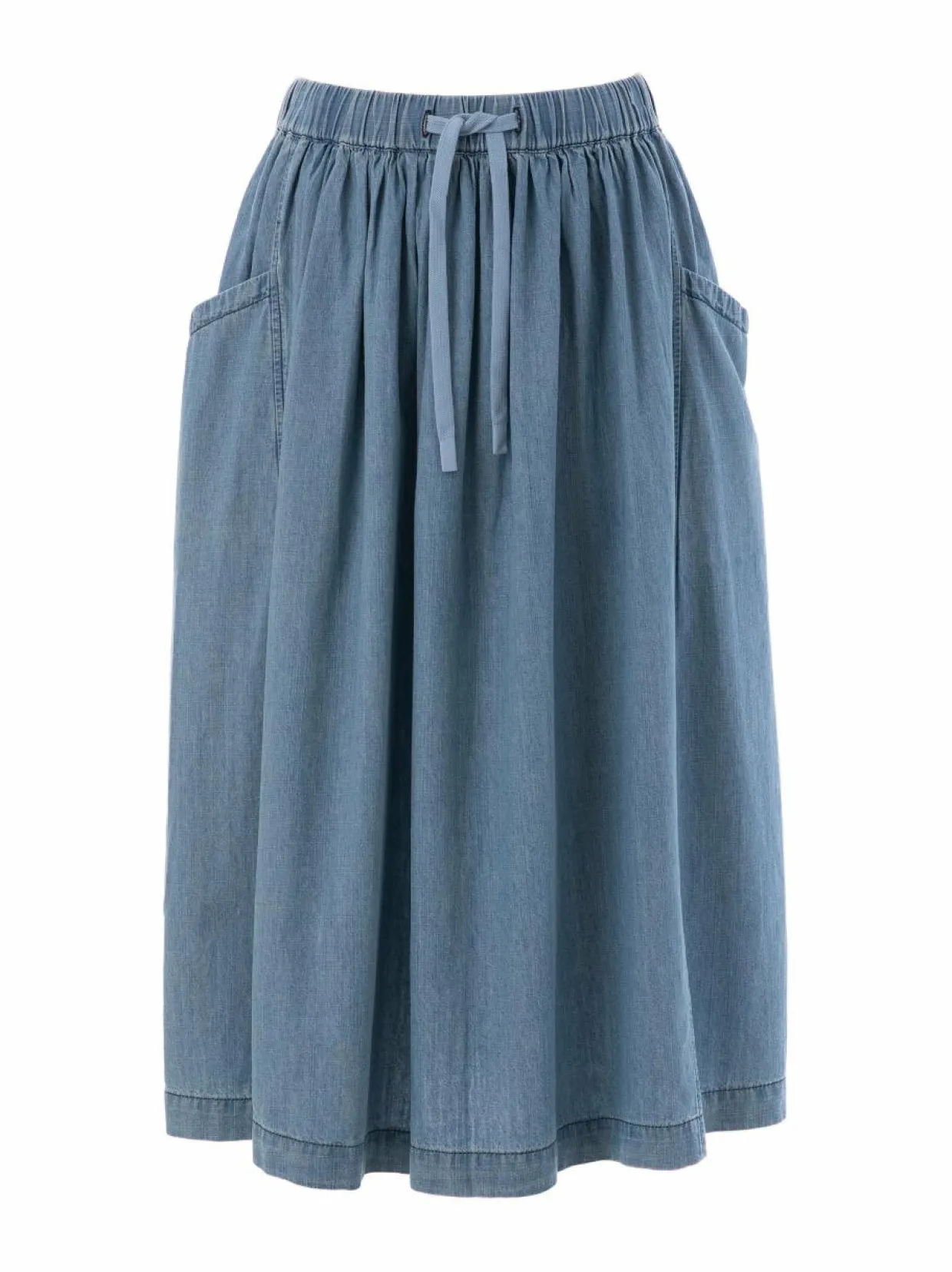 Taskullinen farkkuhame JcSophie vaatemerkiltä. Hameessa on joustava vyötärölinja, jossa on säätömahdollisuus. Hame laskeutuu kauniisti ja on valmistettu miellyttävän tuntuisesta puuvilla-polyesteristä.