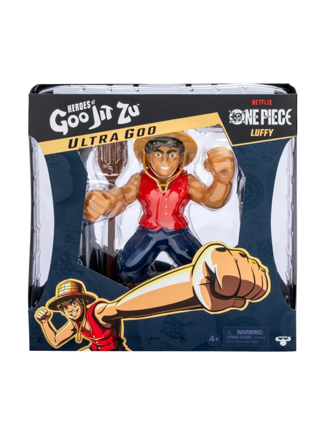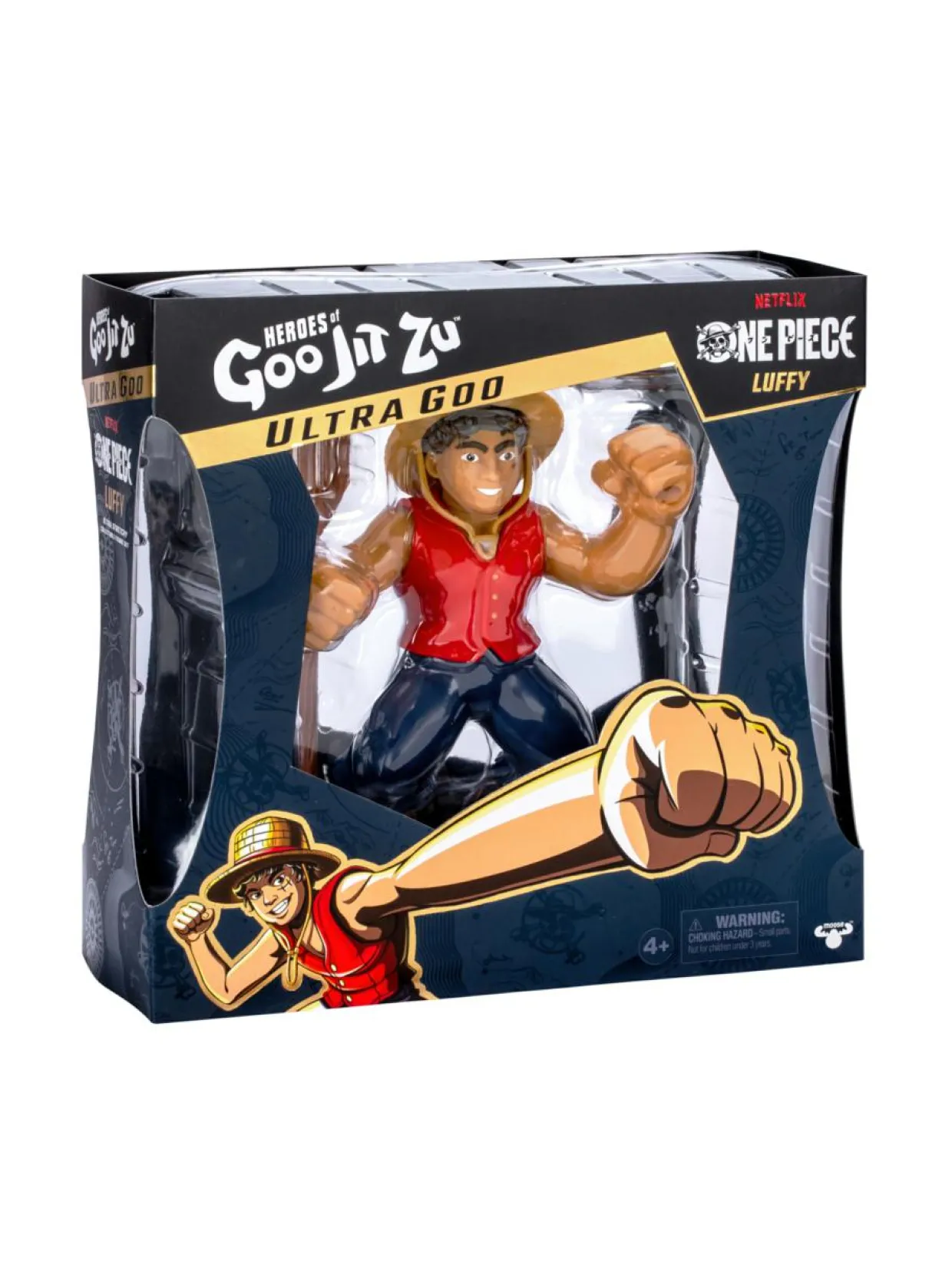 Yksinoikeudella valmistettu Goo Jit Zu Luffy -toimintahahmo on tuttu suositusta Netflix-sarjasta One Piece ja sitä voi venyttää, puristaa ja vääntää ennennäkemättömällä tavalla Ultra-limatäytteisen vartalon ansiosta! Leiki Luffyn kanssa uudella limaisella tavalla – ilman sotkua! Purista, rutista ja venytä sen käsiä, jalkoja ja vartaloa! Luffyn uskomaton limavartalo voi venyä jopa kolminkertaiseksi alkuperäiseen kokoonsa nähden ja palautua sitten alkuperäiseen muotoonsa ja kokoonsa! One Piece -sarjan Luffyssä on deluxe-ominaisuuksia, kuten Luffyn tunnusomainen hattu, liivi ja airo! Tämä huippuluokan Goo Jit Zu -hahmo on erittäin yksityiskohtainen ja pystyy ikonisiin toiminta-asentoihin. Fanit voivat leikkiä hahmolla tai asettaa sen näytille sen hienossa keräilypakkauksessa.
