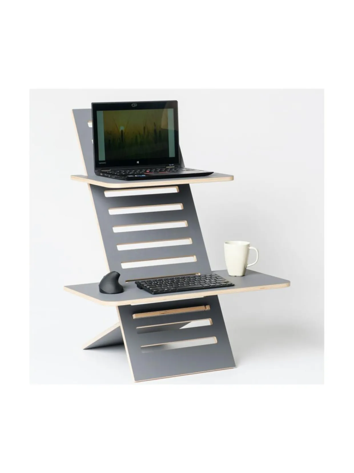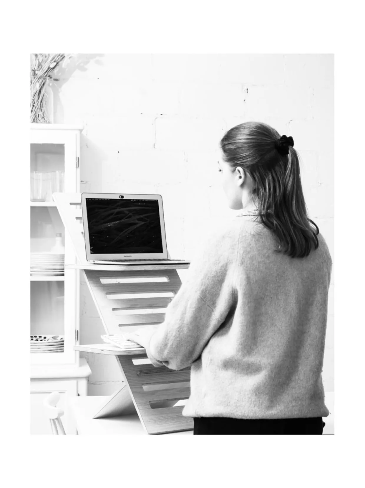 Fiksumpi, ekologisempi ja tehokkaampi tapa työskennellä. Tyylikäs ja ergonominen laptop-teline, valmistettu Suomessa. Säädä korkeutta nopeasti ja helposti; 13 eri korkeuden ansiosta löydät varmasti juuri sinulle sopivan työskentelyasennon! Big Lifterin jalkalevyssä on innovatiivinen patentoitu Puujousi™, joka tekee tuotteen käyttämisestä turvallista ja mukavaa. Neljästä osasta koostuva Hima Big Lifter laptop-teline on helposti kasattava ja siirreltävä. Säädä työskentelykorkeus mieleiseksi nopeasti ja helposti. Yksinkertaisen rakenteen ansiosta tuotteen käyttö on mukavaa sekä tehokasta ja se muuttaa minkä tahansa kiinteän pöydän seisomatasoksi hetkessä! Kantokyky 8 kg/taso. Suomalaista kestävää koivuvaneria, Antrasiitti Anti-fingerprint laminaatti