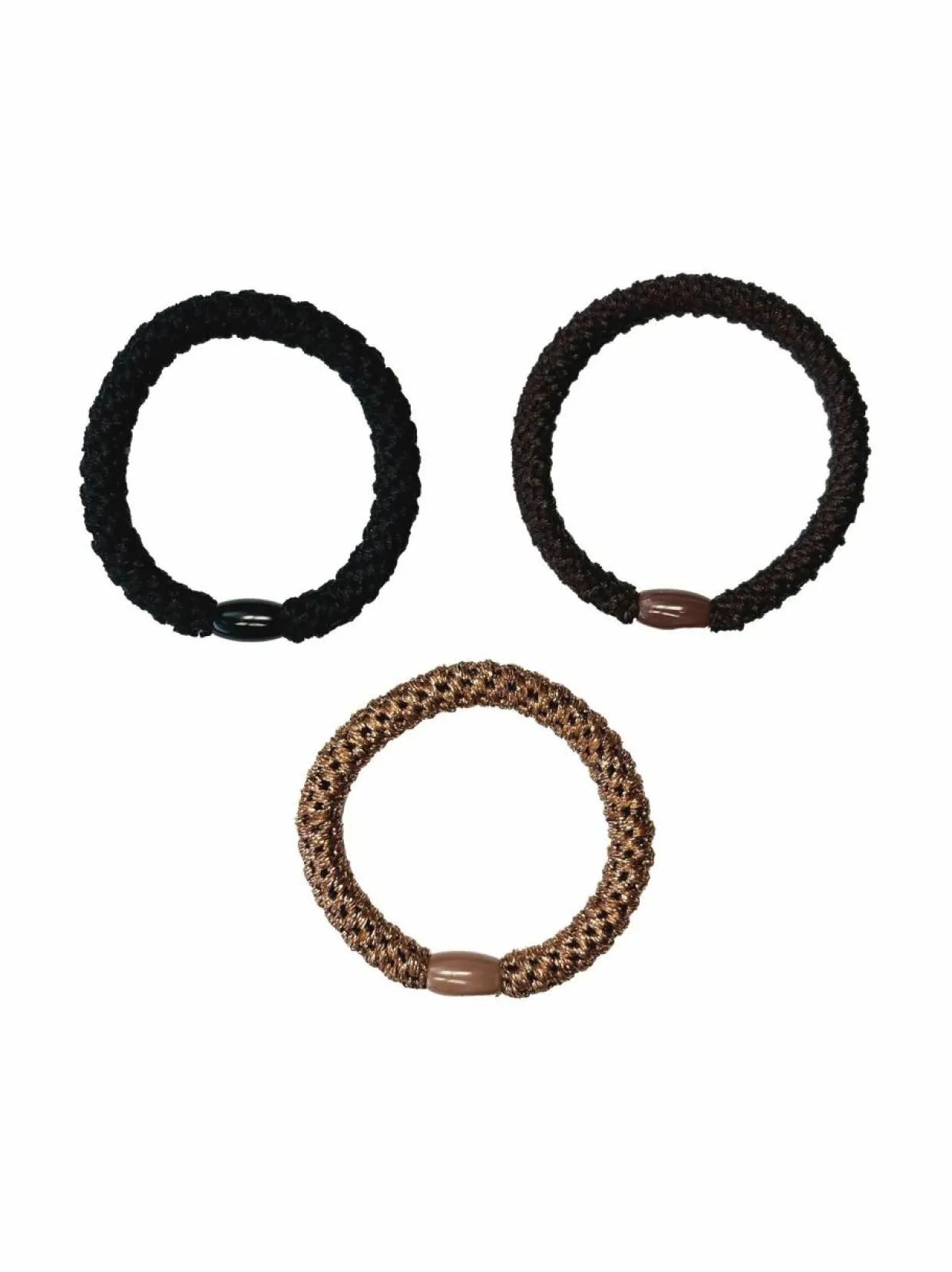 Tyylikkäät punotut hiuslenkit. Pakkauksessa kolme eri väristä hiuslenkkiä.