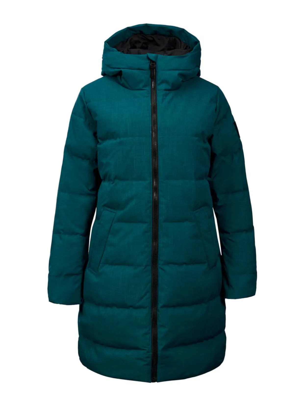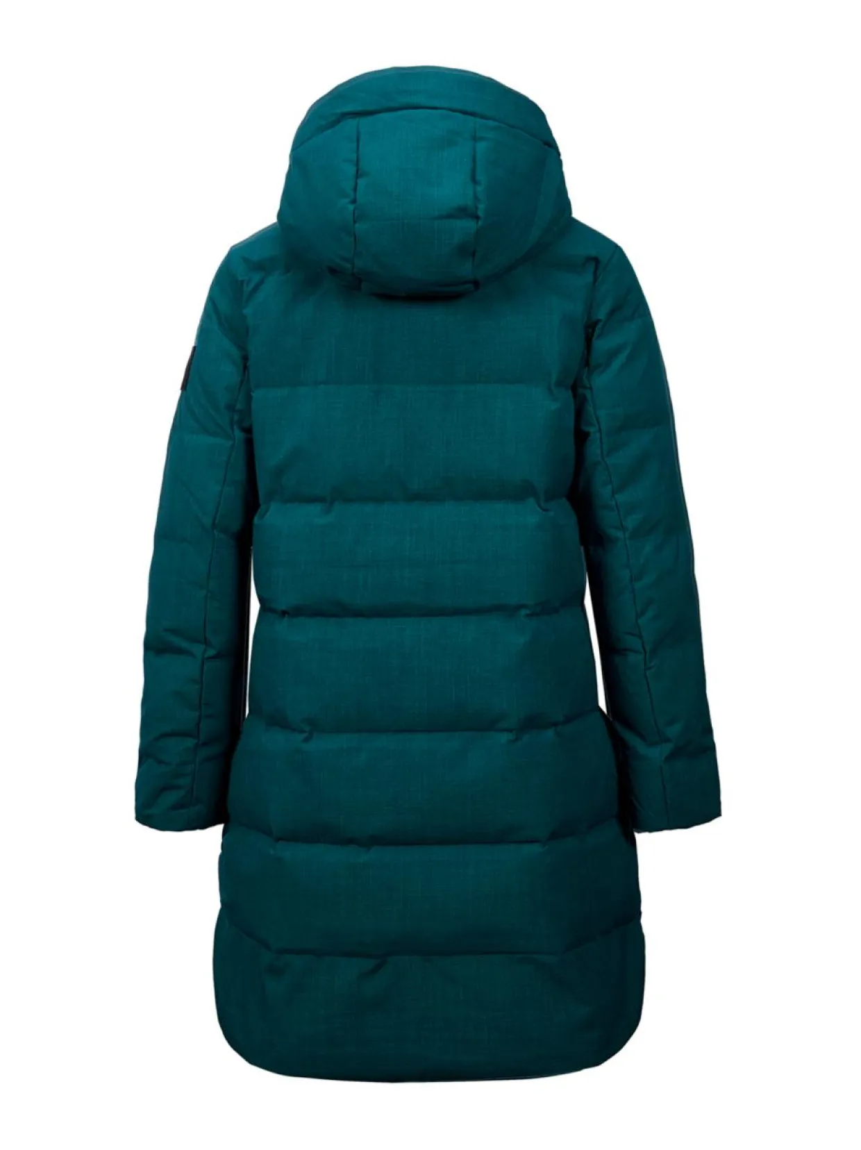Ivalo Hiutale – Naisten lämmin ja säänpitävä pitkä untuvatakki talven vapaa-aikaan ja ulkoiluun. Hihansuissa on sisäpuolella resori, joka estää lämpöä karkaamasta. Istuvuutta voi säätää nyörillä vyötäröllä ja hupun reunassa. Vetoketjulliset taskut, joissa on miellyttävä ja pehmeä sisävuori. Rintatasku vuorin puolella. Päällikankaassa on ympäristöystävällinen PFC-vapaa vedenhylkivyyskäsittely. Käytetty untuva on eettisesti tuotettua RDS-sertifioitua untuvaa.