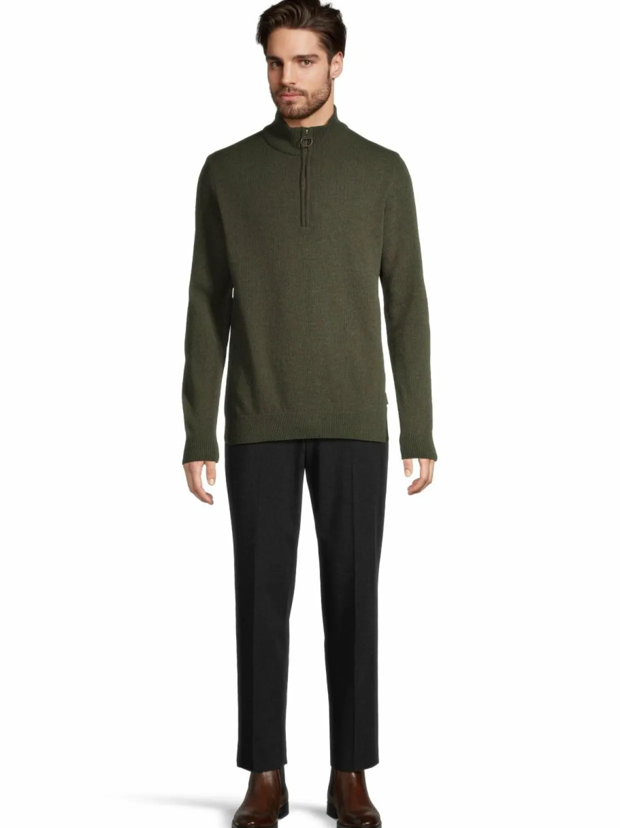 Barbourin lämpimästä villasta valmistettu Holden Half Zip -neulepusero on pitkähihainen ja siinä on pääntiessä puolivetoketjukiinnitys. Kaulus on korkea, jota voidaan vetoketjun avulla muotoilla tyyliin sopivaksi. Neule on malliltaan suora ja sen mitoitus on normaali. Villaneule on viimeistelty merkin tunnusomaisella tartar-kuvioinnilla vetoketjun sisäpuolelta sekä kyynärpäistä.