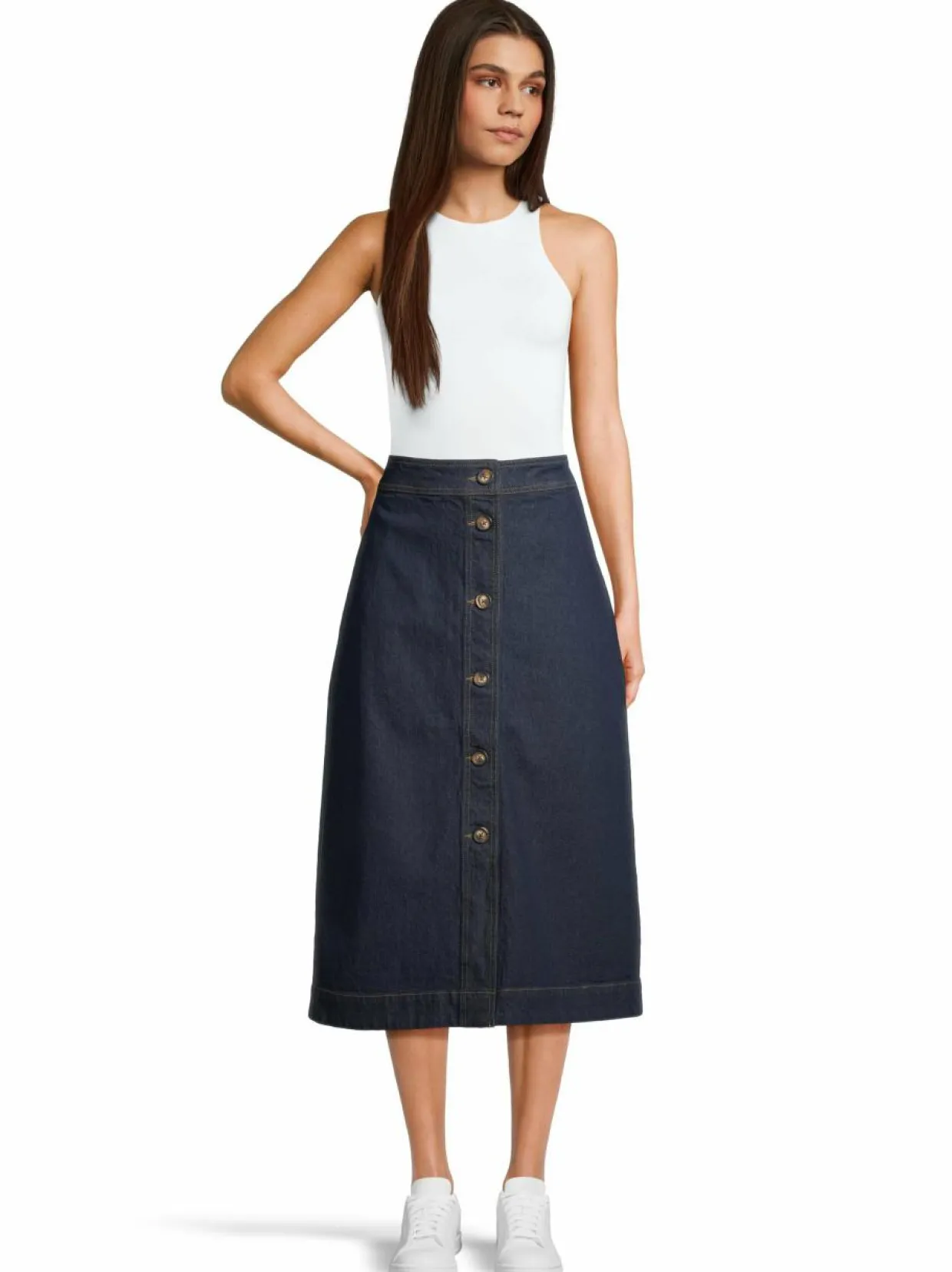 Materiaali99 % puuvilla ja 1 % elastaania PesuohjeetKonepesu Pesulämpötila40 °C ValmistusmaaKiina VäriUNION BLUE Avainsanatnoom, hame, farkkuhame, midihame