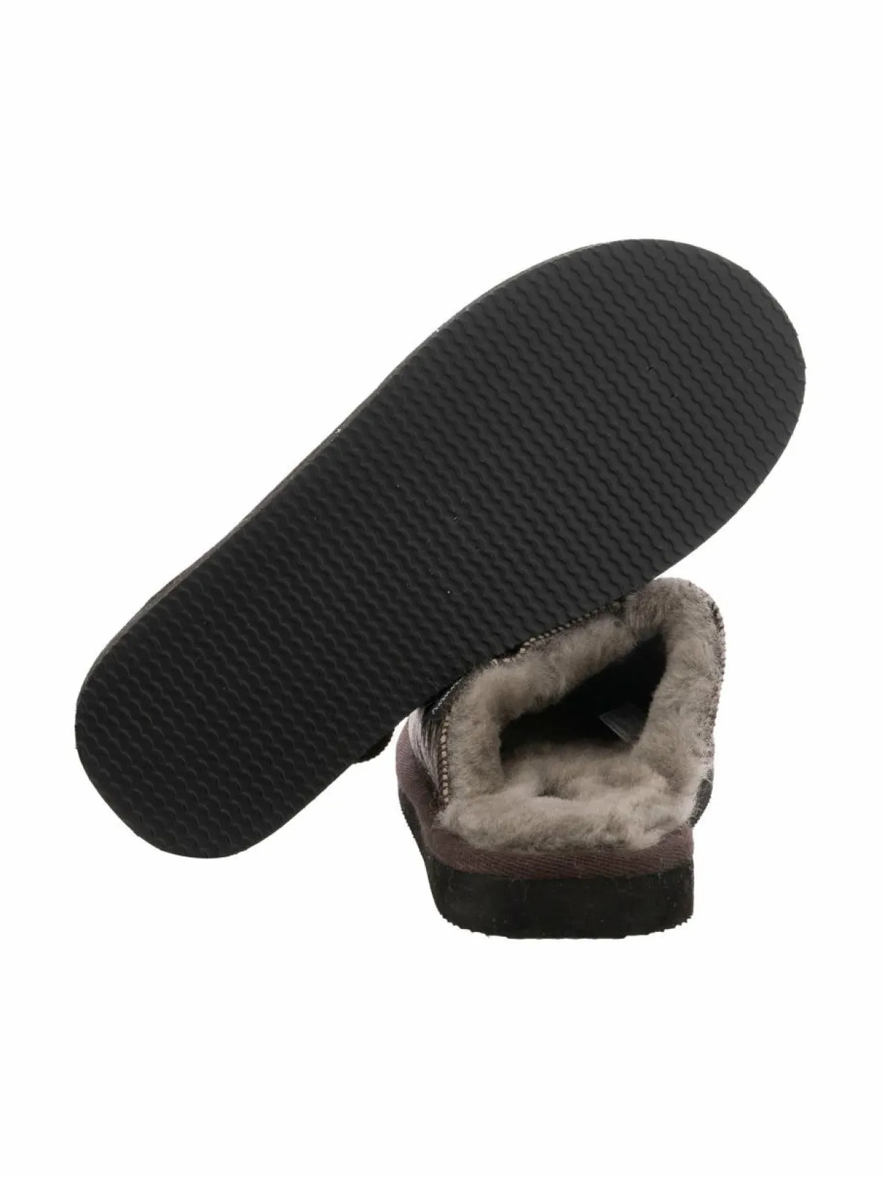 Ylellisissä Shepherdin Hugo-tohveleissa on pehmeä nahkapäällinen ja pumpulimainen lampaanvillavuori. Pohja on kumia.