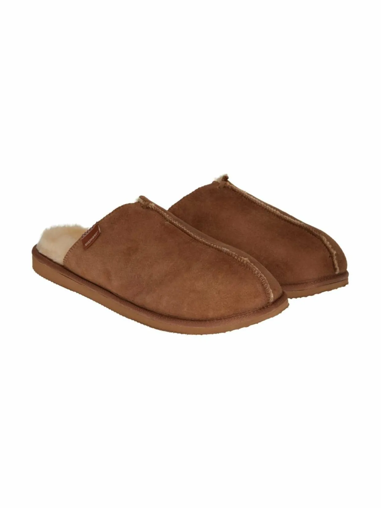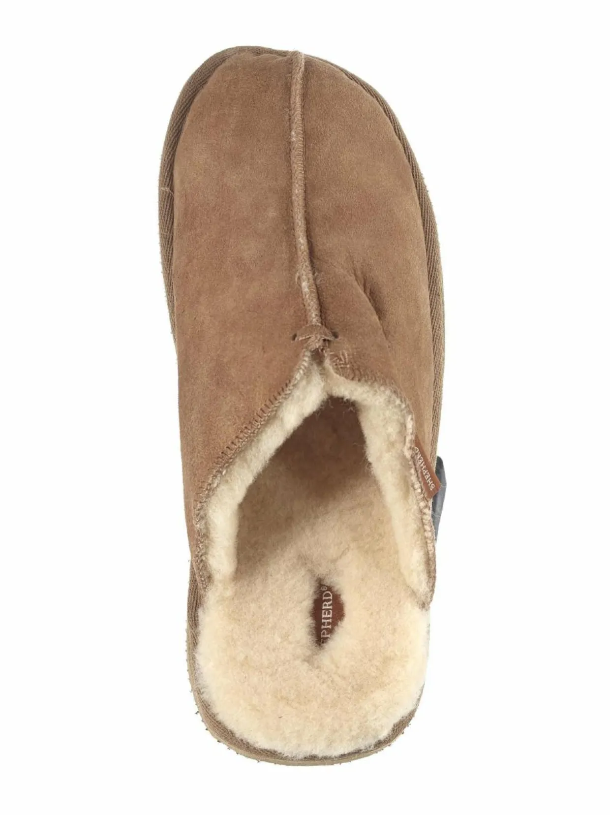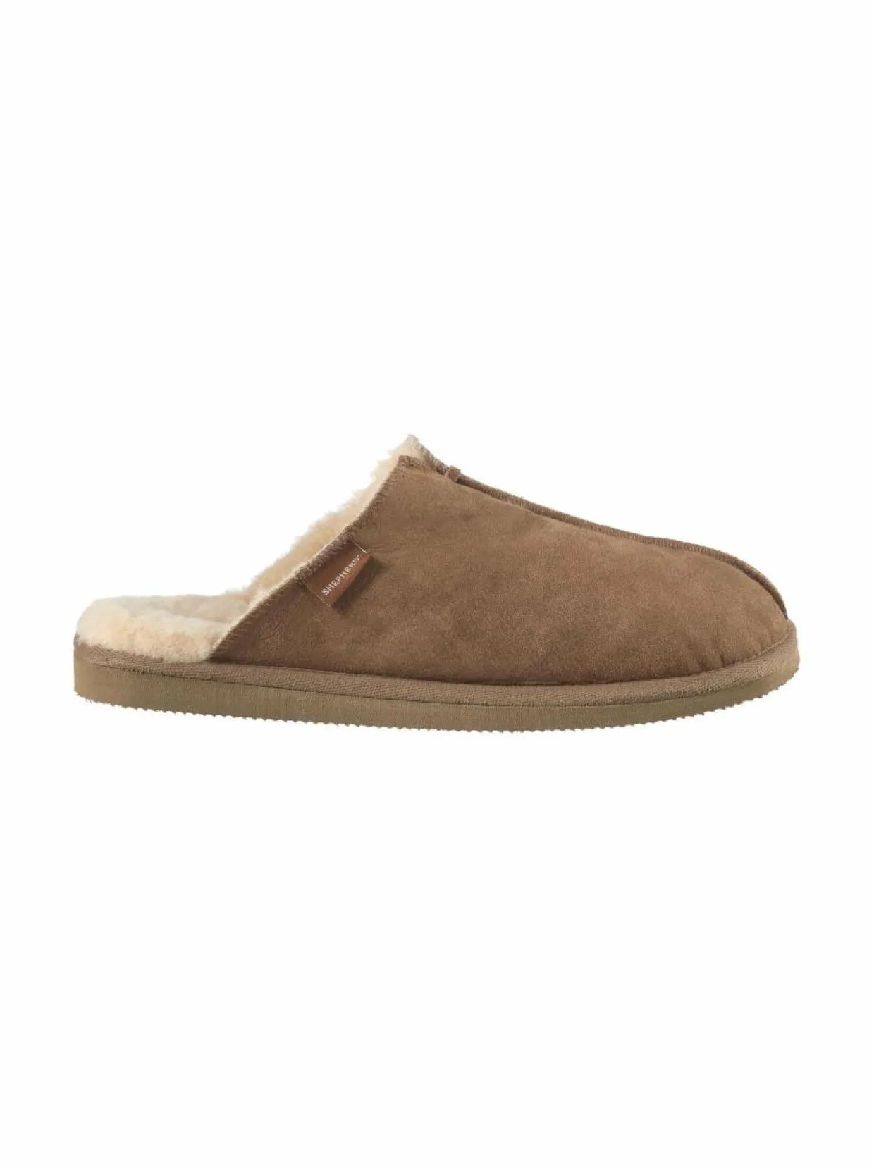 Ylellisissä Shepherdin Hugo-tohveleissa on pehmeä nahkapäällinen ja pumpulimainen lampaanvillavuori. Pohja on kumia.