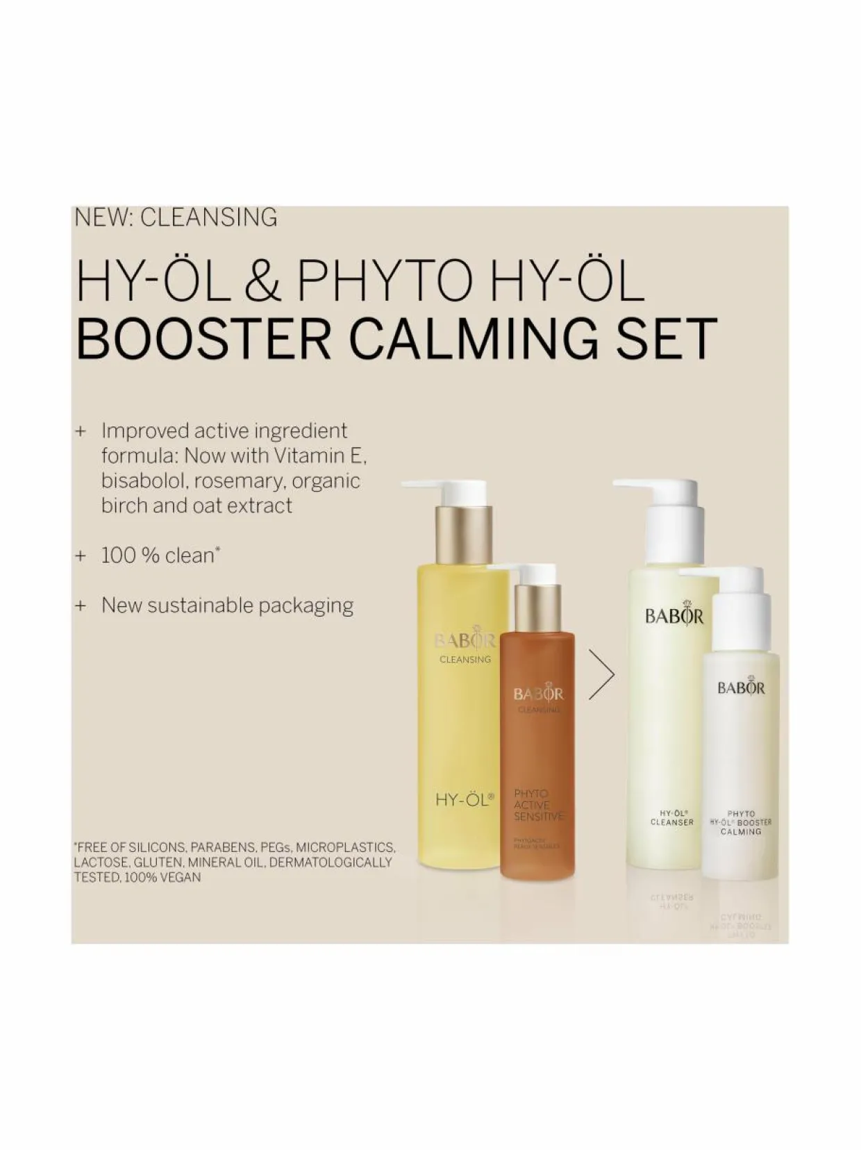 Babor on yhdistänyt veden ja öljyn luontaiset puhdistusominaisuudet ja kehittänyt vallankumouksellisen, useita kertoja palkitun kaksivaiheisen syväpuhdistuksen. Tämä hellävarainen kaava tukee ihon eheää suojaa ja tasapainoista mikrobiomia. Erityinen yhdistelmä korkealaatuisia luonnollisia öljyjä, kuten soija-, seesami- ja maapähkinäöljyjä, joilla on hydrofiilisiä ominaisuuksia, liuottaa kaikki öljy- ja vesipohjaiset likahiukkaset säilyttäen samalla ihon luonnollisen lipidivaipan. Siinä on E-vitamiinia, bisabololia ja quillaja-uutetta, joka toimii ikään kuin lika-magneettina. Yhdessä yksilölliselle ihotyypillesi sopivan hoitotuotteen, Phyto HY-ÖL® Boosterin (aiemmin Phytoactive), kanssa iho suojataan haitallisilta kaupunkiympäristön vaikutuksilta ja se on vastaanottavaisempi jatkohoitoon. Tuloksena on huokosista puhdas ja herkkä iho ilman kiristystä tai rasvaisia jäämiä. Hoitotuote BABOR HY-ÖL® -kaksifaasipuhdistukseen kosteusköyhälle iholle. Jo puhdistuksen aikana se tukee eheää ihoaluetta ja tasapainoista mikrobiomia. Valitut rosmariinin ja luomukoivun uutteet elävöittävät ihoa. Kaurauute, glyseriini ja polysakkaridit ovat kosteusvoiteita. Moringansiemenproteiini suojaa ihoa haitallisilta kaupunkiympäristön vaikutuksilta. Virkistävä tuoksu tarjoaa erityisen raikkautta. Tuloksena on huokosista puhdas, punertava ja tuntuvan pehmeä iho.