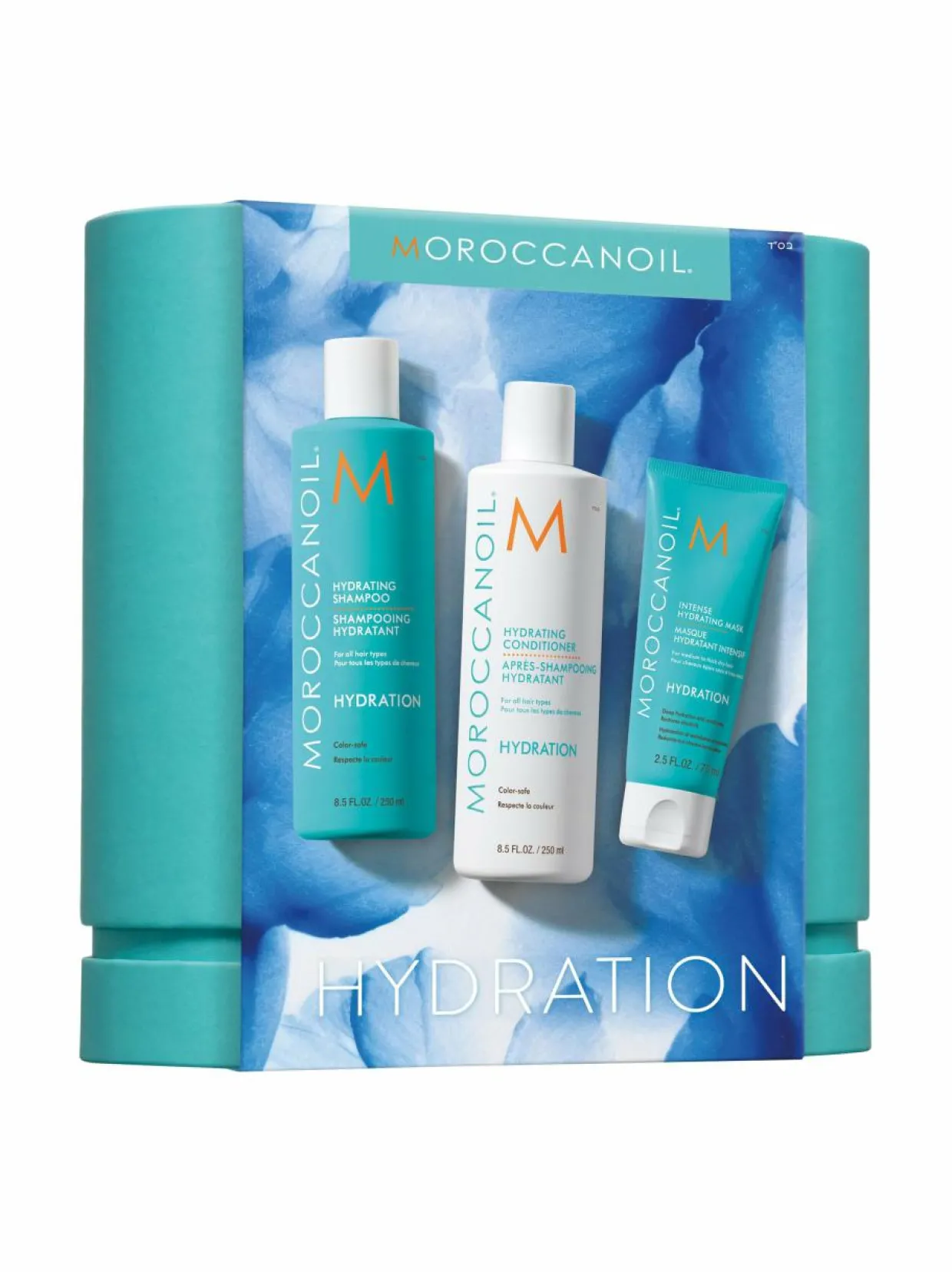 Moroccanoil Hydration Kit on täydellinen paketti kuiville ja elottomille hiuksille, jotka tarvitsevat intensiivistä hoitoa. Arganöljyllä ja ravitsevilla ainesosilla rikastetut tuotteet palauttavat kosteuden, pehmeyden ja kiillon hiuksiin.Pakkauksessa: