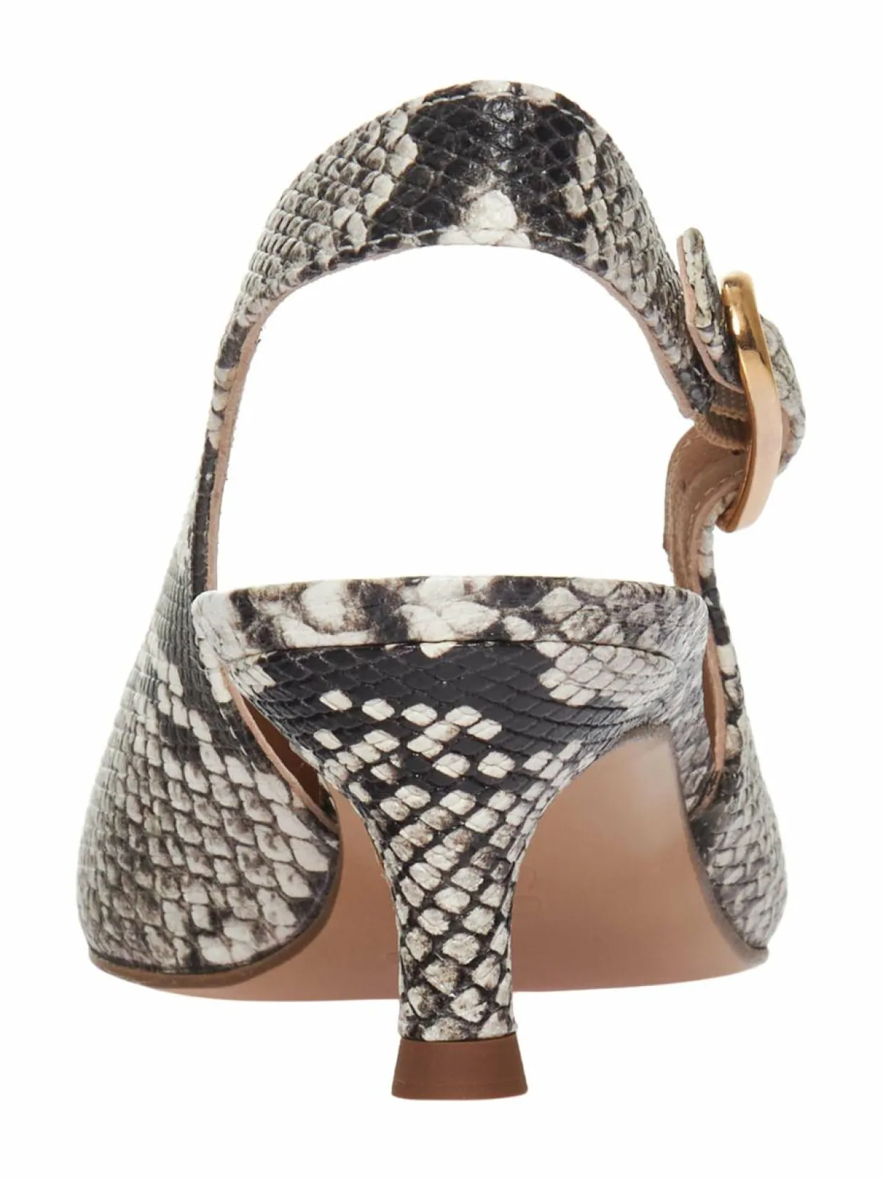 Unisa merkkiset Ibon-avokkaat on valmistettu taipuisasta käärmekuvioidusta nahasta ja niissä on elegantti korko. Yksityiskohtana terävä kärki ja kapea Slingback-remmi kullansävyisellä soljella. Ibon-nahkakengät ovat ihanteellinen valinta niin arkeen kuin juhlaan.