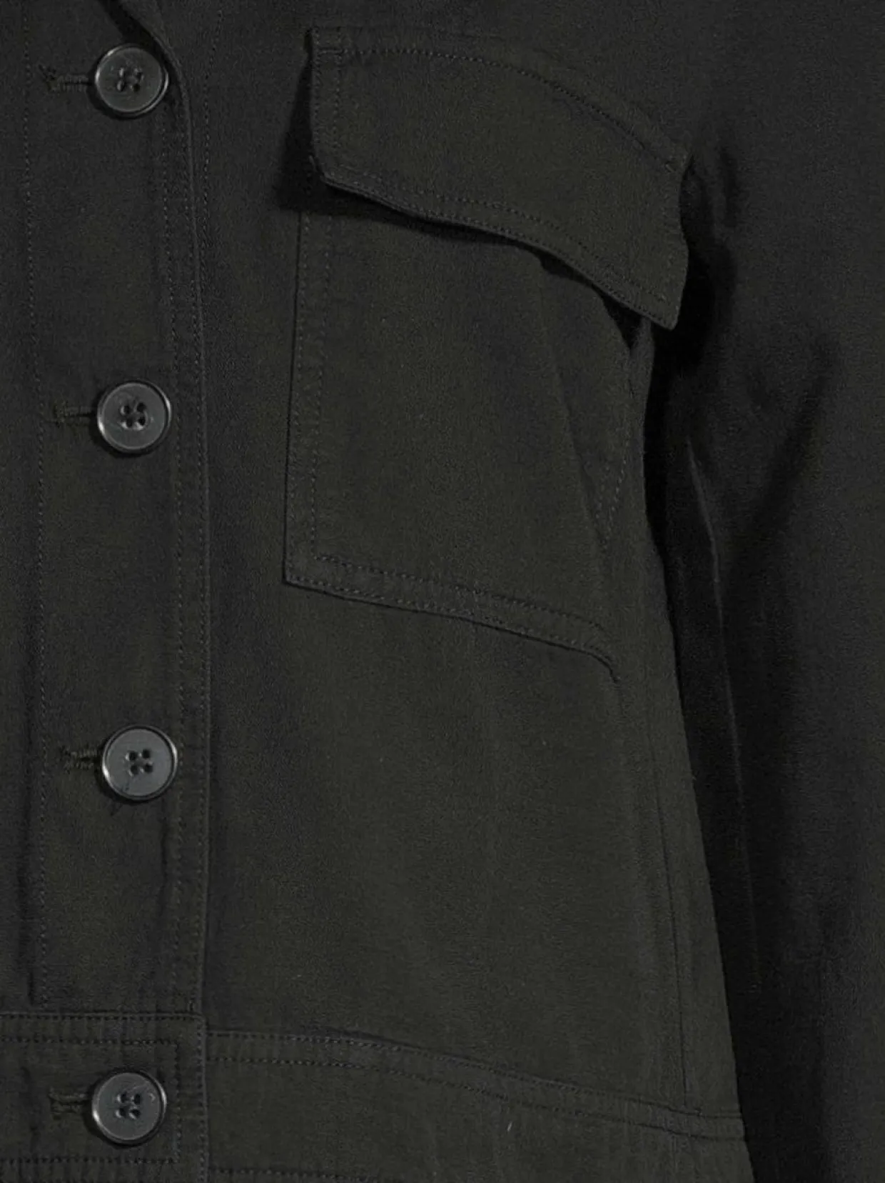 Kevyt, rento takki, jossa on kaulus, pitkät hihat ja hihansuut, joissa on hihansuuhalkeama. Takissa on topstitched-ommel. Takissa on kaksi rintataskua. Takki on valmistettu luonnonmukaisesta puuvillasta. Puuvilla on pehmeä ja hengittävä materiaali, joka sopii erinomaisesti vaatteisiin, joita käytetään lähellä ihoa. Puuvilla on myös kestävä materiaali, joka kestää useita pesuja. Takki sopii erinomaisesti kevään ja syksyn viileämpiin päiviin. Takki on mukava ja tyylikäs, ja se sopii useisiin eri tyyleihin.