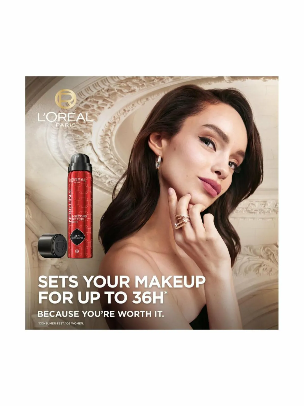 L’Oréal Paris Infaillible 3-Second Setting Mist -meikinkiinnityssuihke varmistaa, että meikki ei leviä. Meikinkiinnityssuihke pitää meikin paikoillaan jopa 36 tunnin ajan*. Veden- ja hienkestävä koostumus ei tahraa vaatteita. Micro diffusing-järjestelmä: Tuntuu höyhenenkevyeltä, ei tunnu tahmaiselta, ei jätä näkyviä jälkiä eikä sotke meikkiäsi. Silkinpehmeä lopputulos.