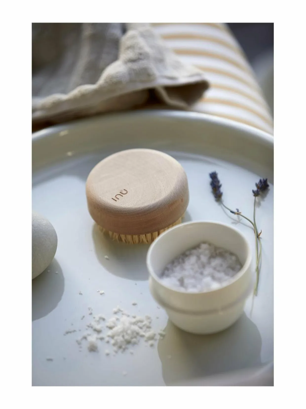Zone Denmarkin ylellisen Inu-sarjan spa-tuotteet tuovat hektiseen arkeen ripauksen luksusta ja harmoniaa. Kevyestä pyökistä ja pehmeästä luonnonharjaksesta valmistetulla kylpyharjalla luot jokaiseen päivään pieniä nautinnon ja läsnäolon hetkiä.