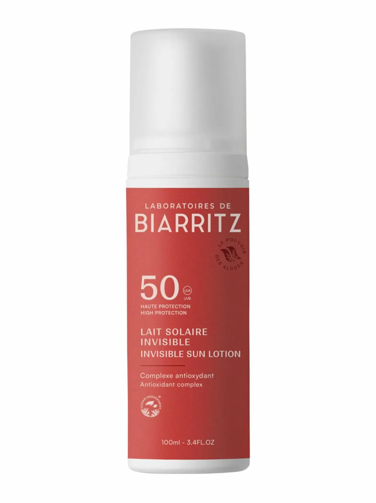 Laboratoires de Biarritz SPF50 Invisible Sun Milk aurinkovoide tarjoaa erittäin korkean suojan UVA- ja UVB-säteitä vastaan ja samalla kosteuttaa ihoa. Luomu aloe veralla rikastettu nestemäinen koostumus on helposti levittyvä ja jättää iholle raikkaan tunteen. Meren voiman inspiroima SPF50 Invisible Sun Milk yhdistää kaksi tehokasta ainesosakompleksia, jotka tarjoavat UVA/UVB-suojan ja auttavat säilyttämään ihosi nuorekkaan elinvoimaisuuden. Käyttö: Levitä runsaasti iholle ennen auringossa oleskelua.