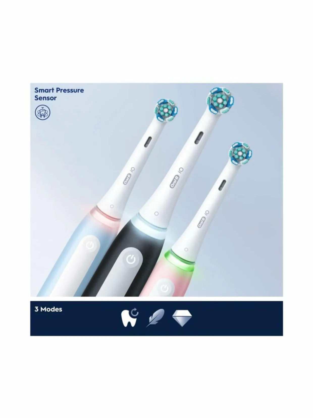 Oral-B iO 3 -sähköhammasharja hyödyntää Oral-B:n parasta tekniikkaa, jossa yhdistyy mikrovärähtelevät harjakset ja hammaslääkärien innoittama pyöreä harjaspää. Sen ansiosta saat ammattimaisen puhtaan tunteen kotona. Älykäs paineentunnistin auttaa harjaamaan oikealla paineella, ei liian kovaa eikä liian varovasti, jotta voit suojata ikeniäsi paremmin. Älykäs paineentunnistin ilmoittaa kuinka pitkään olet harjannut liiallisella paineella. Vaihda Oral-B iO -vaihtoharja kolmen kuukauden välein parhaan puhdistustehon säilyttämiseksi.
