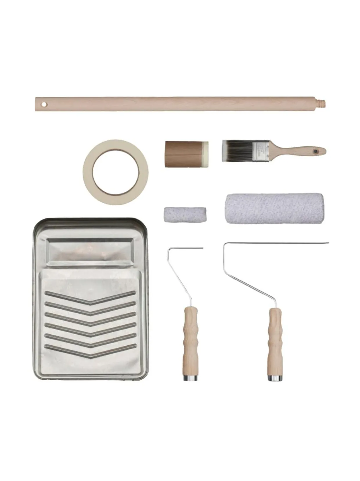 EPISODE II on laajempi 9-osainen maalaussetti. Pakkaus sisältää 23cm mikrokuitutelan, 23cm pyökkisen telavarren, 10cm mikrokuitutelan, 10cm pyökkisen telavarren, 60cm pyökkisen jatkovarren, 23cm metallisen maalikaukalon, 5cm pensselin, 3cm x 50m maalarinteipin sekä 18cm x 20m teippireunaisen suojapaperin.