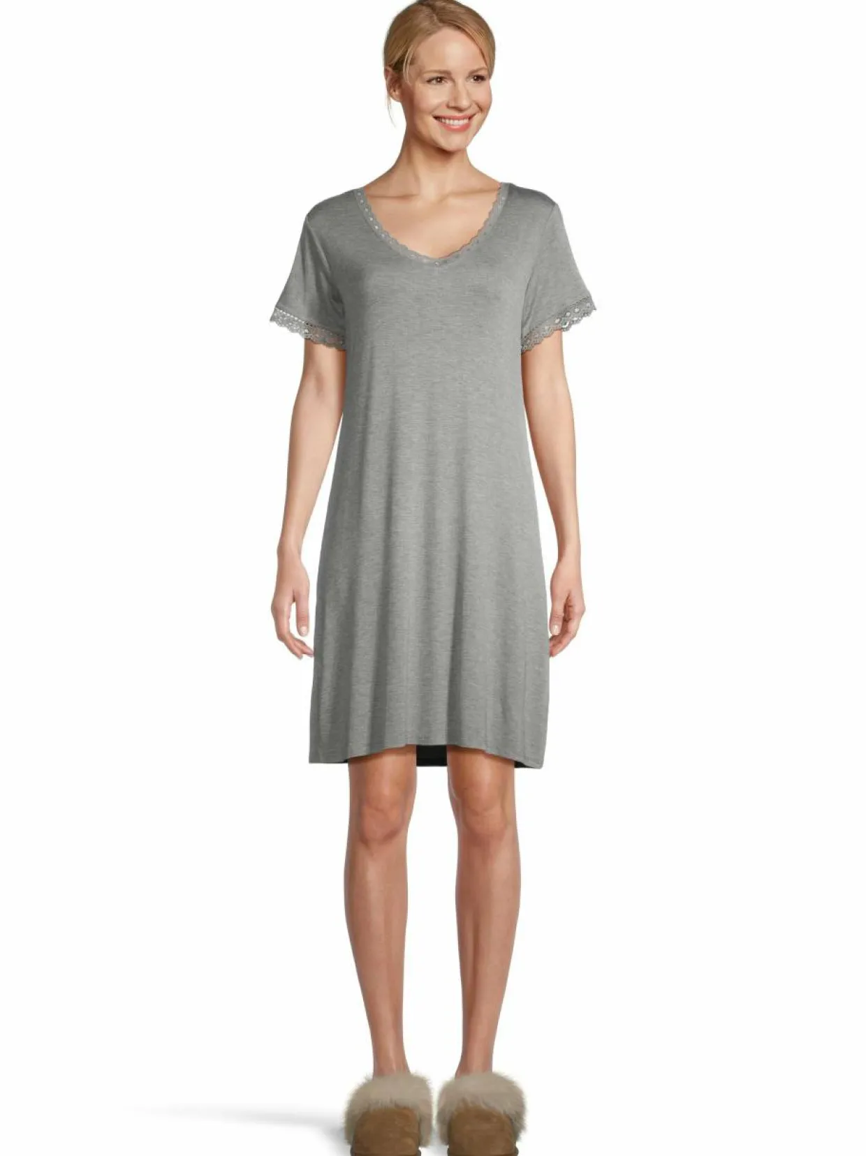Yöpaita on erittäin pehmeän tuntuista Ecovero-viskoosia, johon on lisätty joustoa. Eleganssia lisäävät pitsiyksityiskohdat.LENZING™ ECOVERO™ -viskoosikuitu on peräisin kestävästi viljellystä, sertifioidusta sekä valvotusta puu- ja selluloosakuidusta. Valmistettu tavalla, joka vähentää ympäristövaikutuksia.