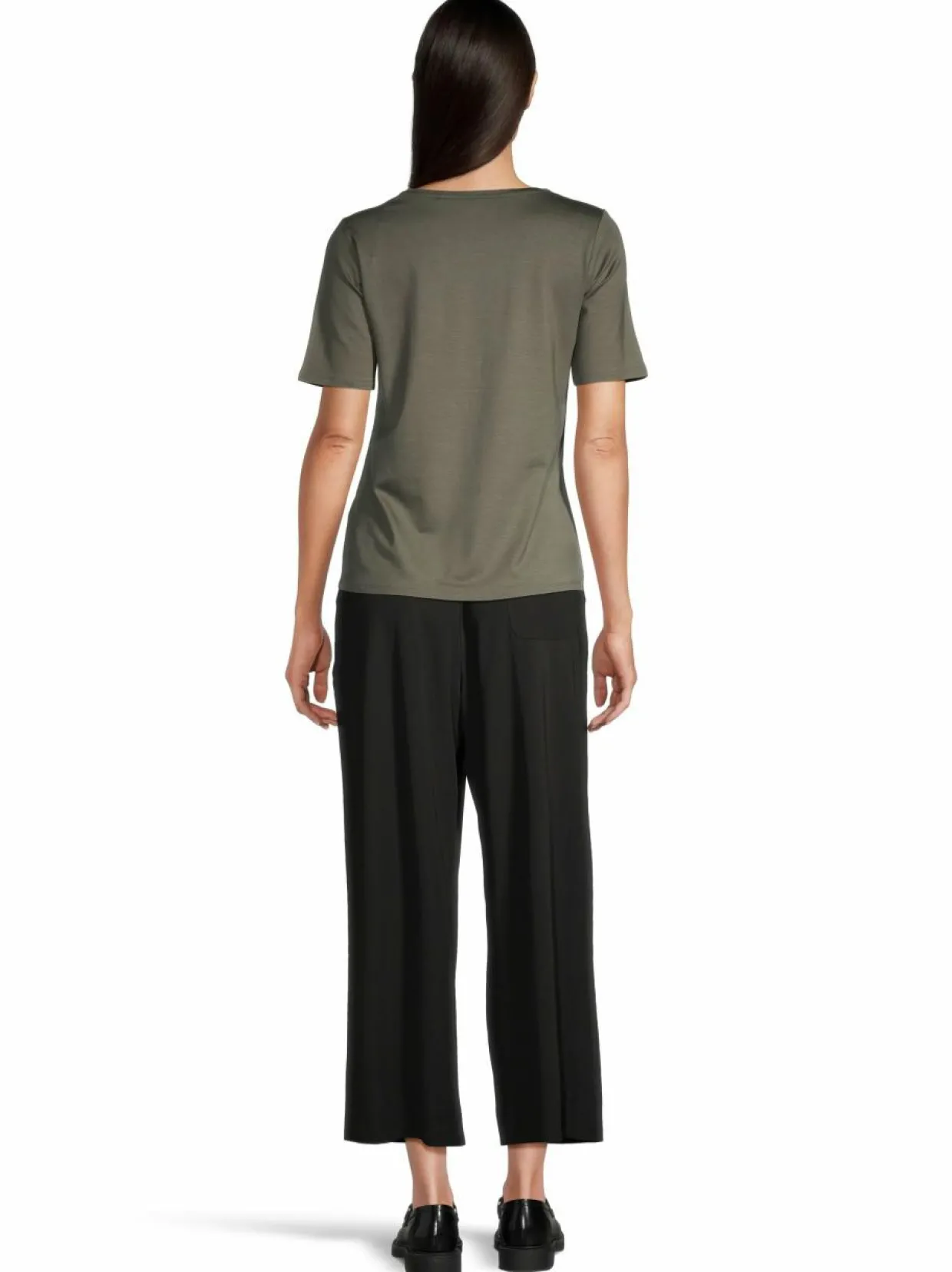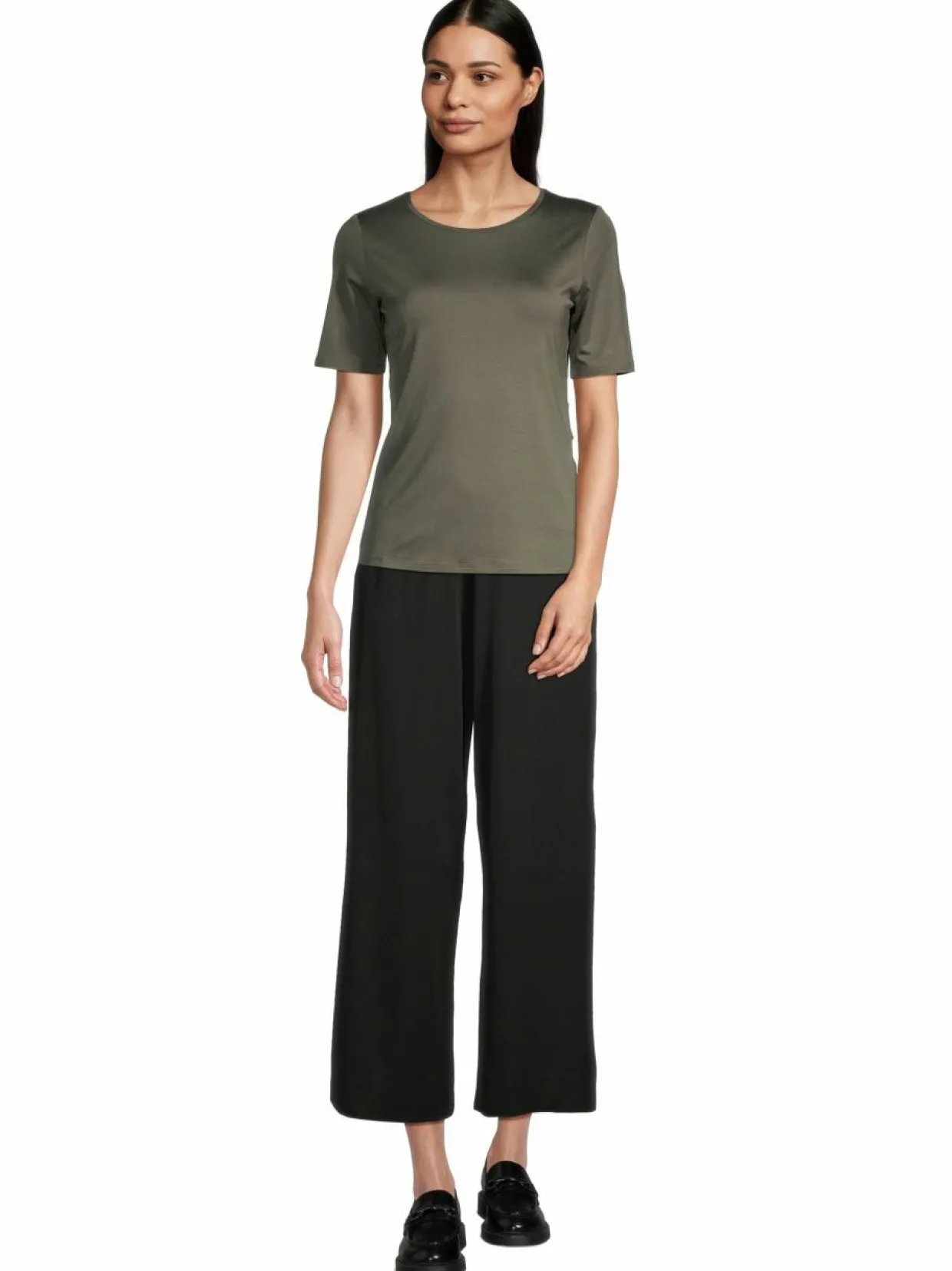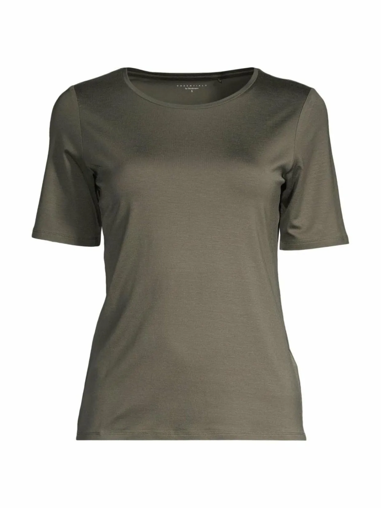 ESSENTIALS by Stockmannin Jade t-paita on käytännöllinen valinta jokaiseen päivään. Paita on valmistettu merseroidusta lyocell-elastaanimateriaalista. Se on miellyttävä ja hengittävä luottovaate, joka sopii yhteen lähes minkä tahansa alaosan, bleiserin ja asusteiden kanssa.
