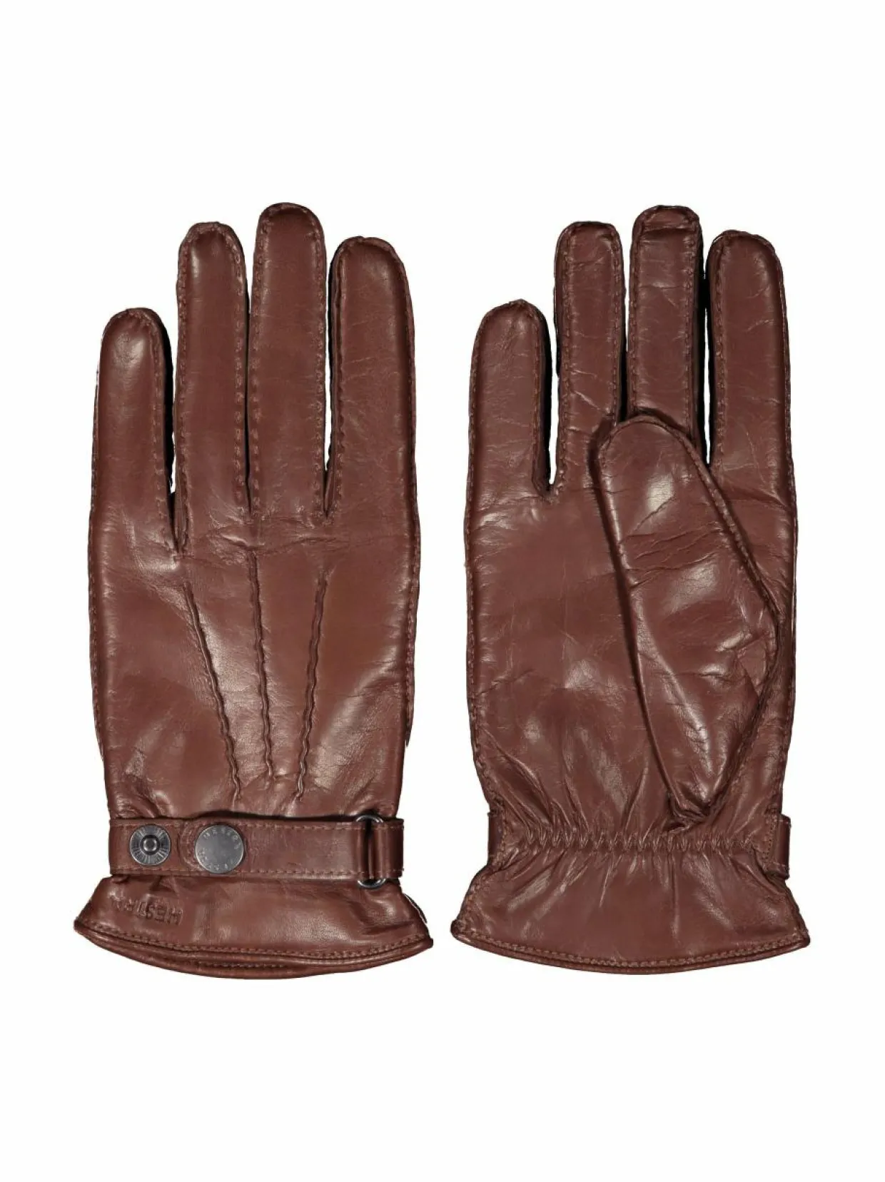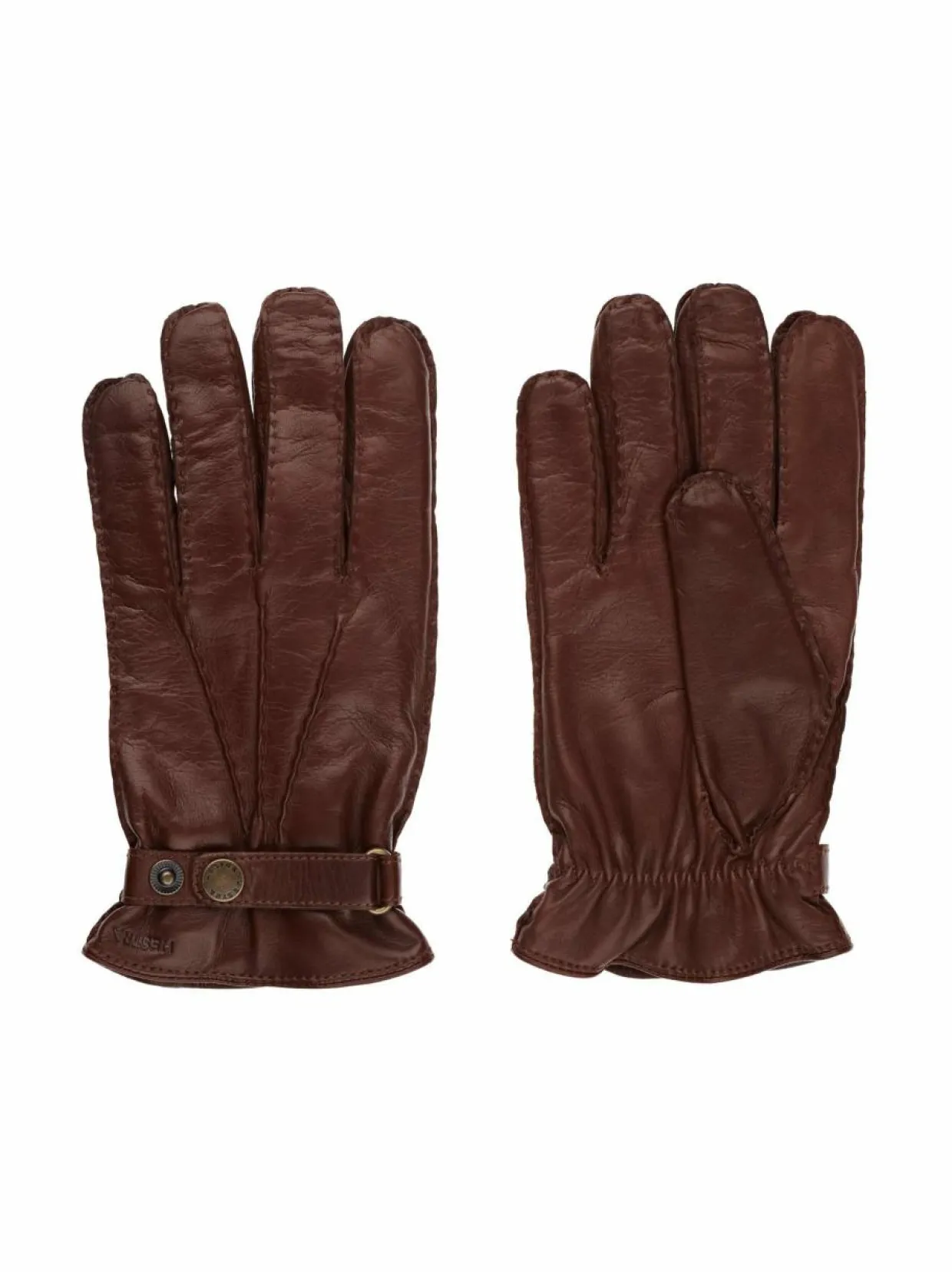 Aina tyylikkäissä Hestran Jake-nahkakäsineissä on villasekoitevuori, joka lämmittää syksyn ja talven viileydessä. Ranteessa nepparillinen solki.