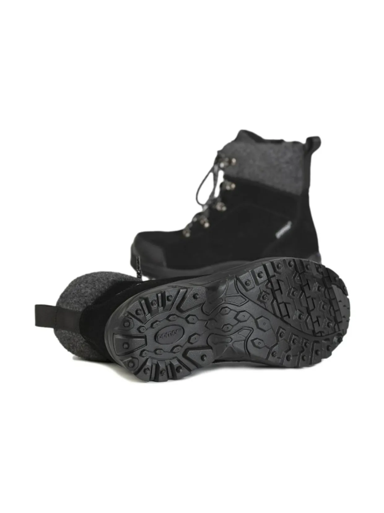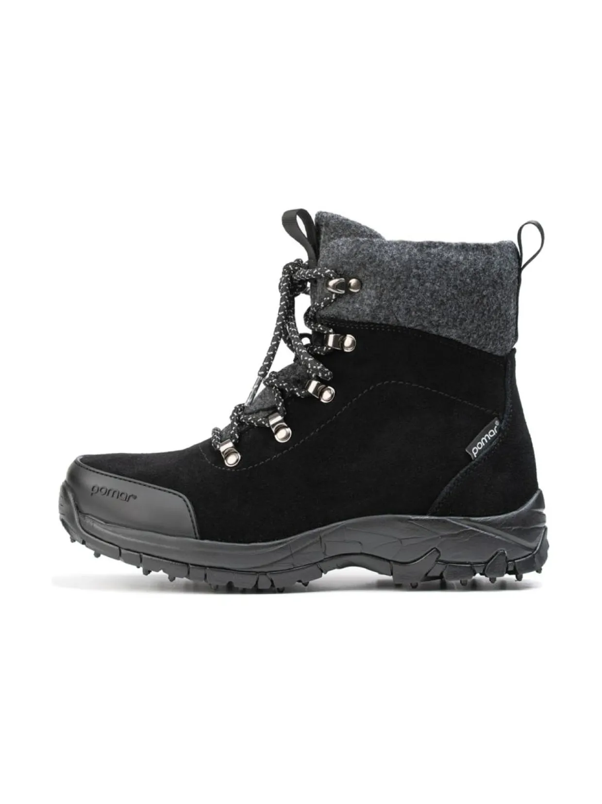Pomar SPIKE-pohja koostuu EVA-kumista, joka säilyttää ominaisuutensa kovemmillakin pakkasilla ja teräspiikeistä, jotka pitävät sinut pystyssä jäiselläkin pinnalla. Askeleesi pysyy keveänä, sillä olemme onnistuneet pitämään näiden kenkien painon todella alhaisena. Pohjaa ei suositella sisäkäyttöön.