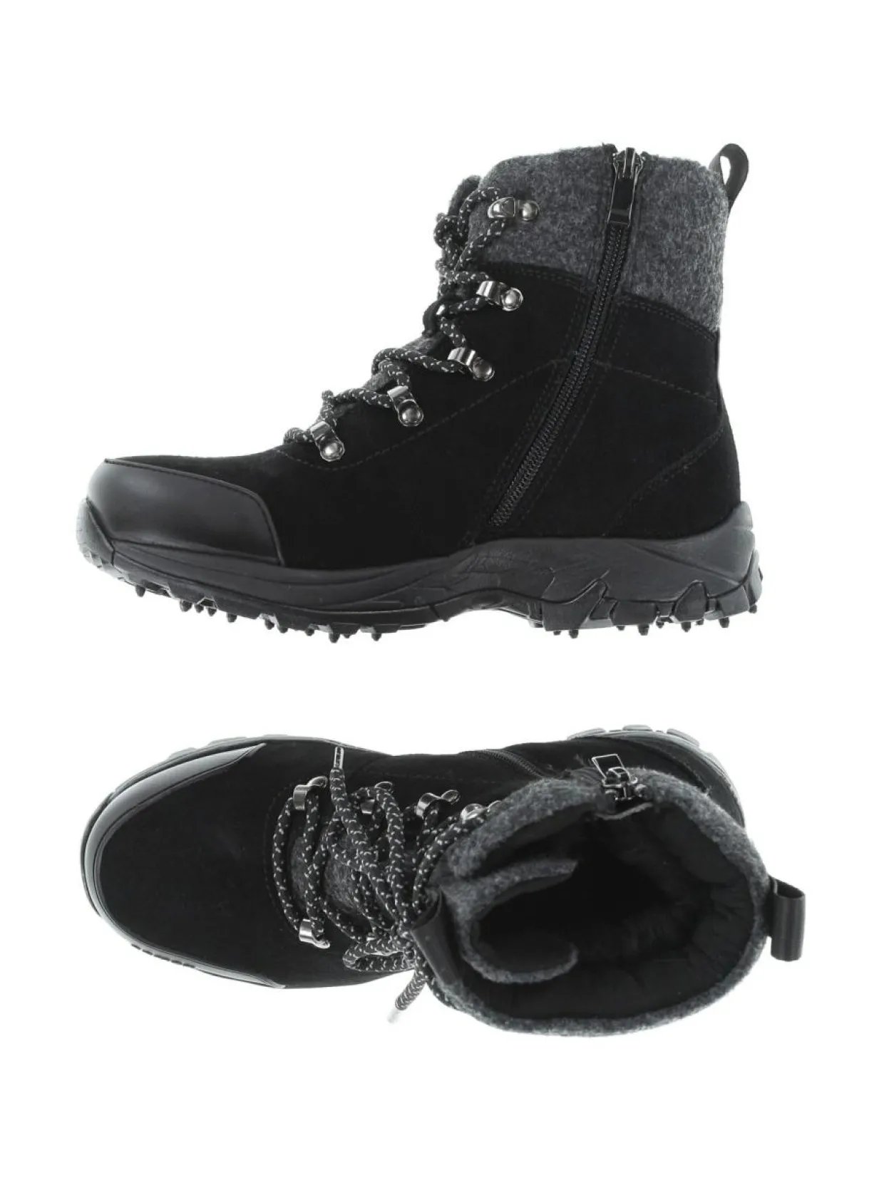 KIINNITYS Pue nopeasti vetoketjulla. Joustava venyke sisävarressa tuo käyttömukavuutta ja helpottaa istuvuuttaMateriaaliMusta mokkanahka ja tummanharmaa villahuopa SisäpuoliIrroitettava pohjallinen UlkopohjaSPIKE -nastapohja VäriBLACK SUEDE/GRANIT FELT/SPIKE Avainsanatnastakengät, Spike, wintergrip, talvikengät,