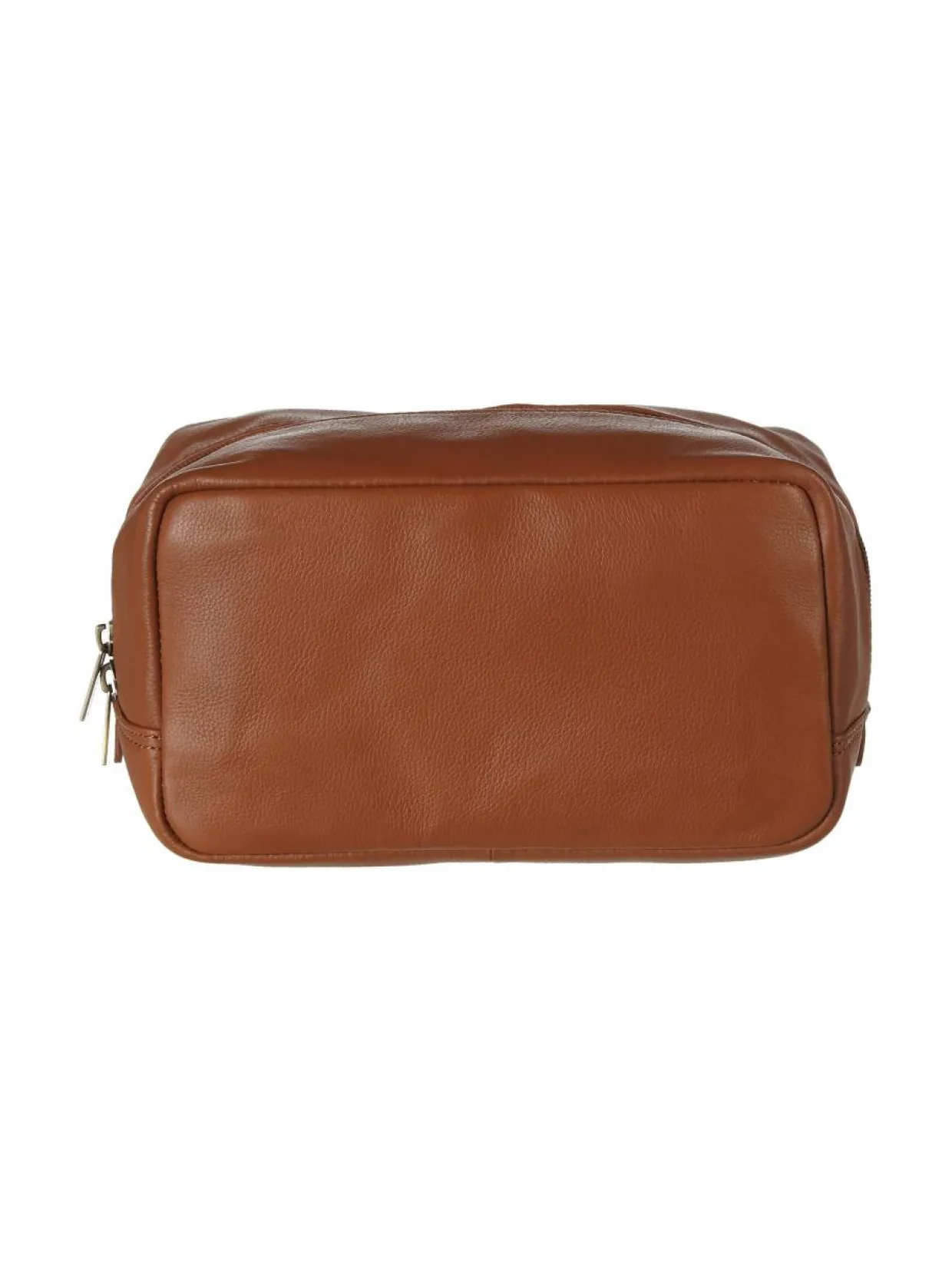 Nahkainen CONSTRUE-toilettilaukku on hyvä ottaa vaikka matkalle mukaan. Kaksisuuntaisella vetoketjulla suljettavassa laukussa on sisäpuolella sileäpintainen vuorikangas ja kaksi vetoketjullista taskua.