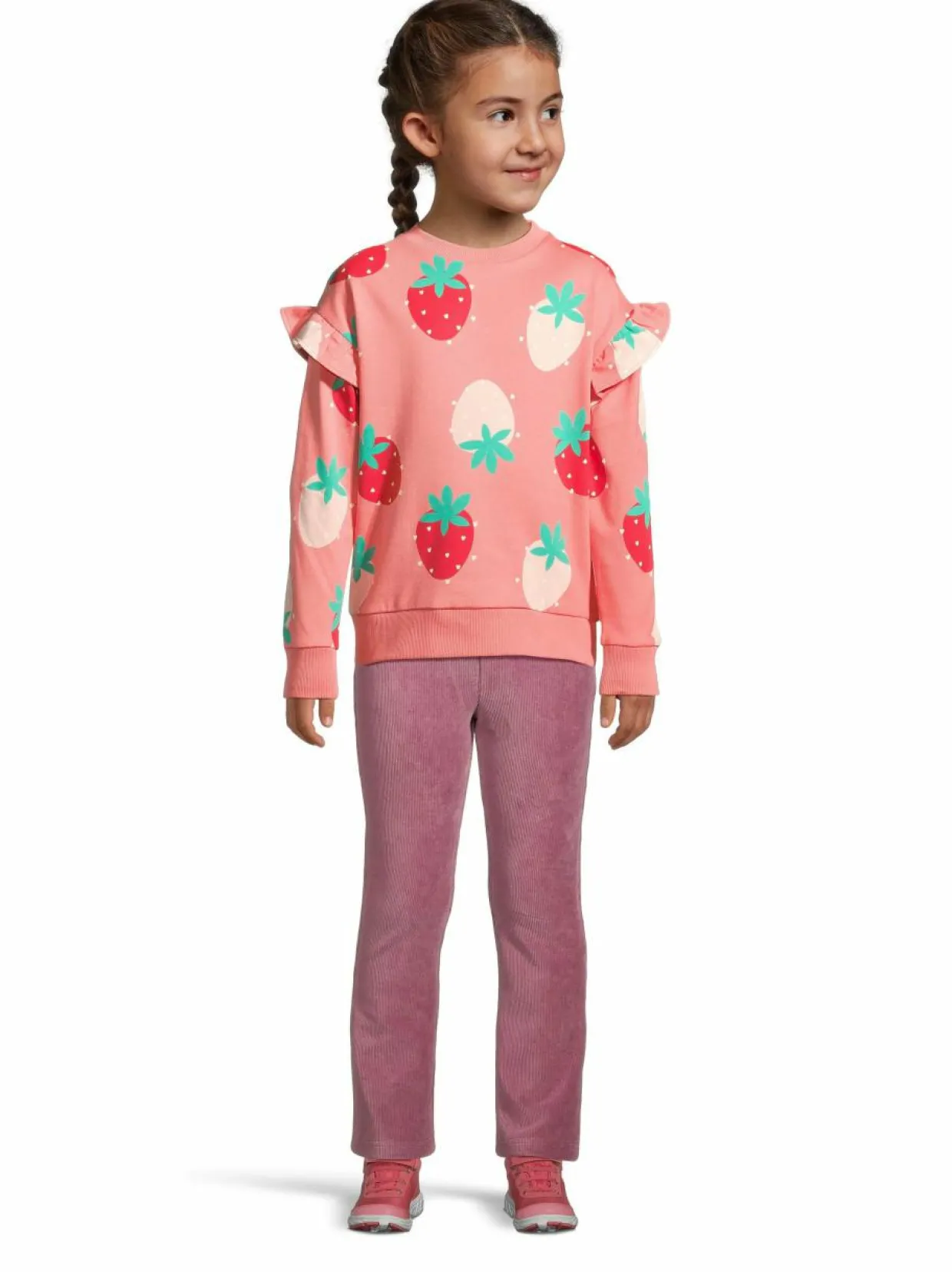 Bogin Jasmin-collegepaita on ihoystävällistä luomupuuvillaa, joka tuntuu pehmeältä ja sopii myös herkälle iholle. Paidassa on resorit pääntiellä, hihansuissa ja helmassa. Kauttaaltaan mansikkakuvioitua collegepaitaa tyylittävät röyhelöt olkasaumoissa. Sisäpuoli on pehmeäksi harjattua minifleeceä. Tämä collegepaita on täydellinen valinta päivittäiseen käyttöön, tarjoten sekä mukavuutta että tyyliä pienille seikkailijoille.