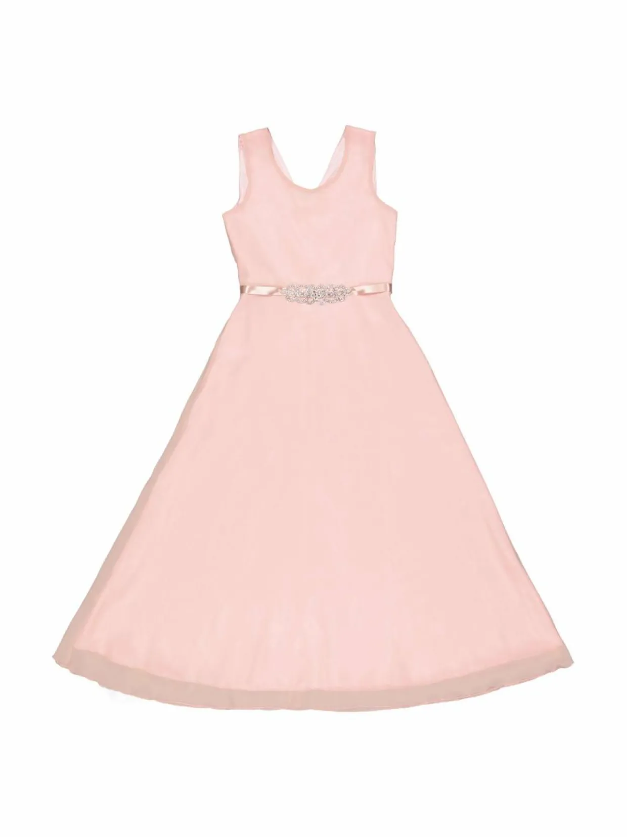 Tyylikäs sifongista valmistettu juhlamekko, jonka vyötäröä kaunistaa kristallikoriste. Mekossa on satiinivuori ja takaosassa pukemista helpottava vetoketju. Anna lapsellesi mahdollisuus tuntea itsensä taianomaiseksi ja elegantiksi tässä upeassa juhlamekossa.
