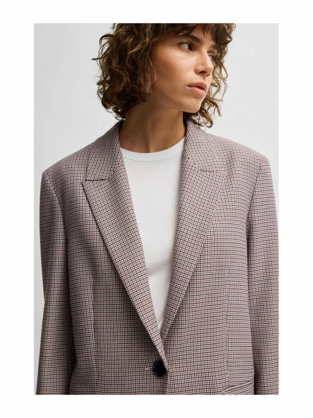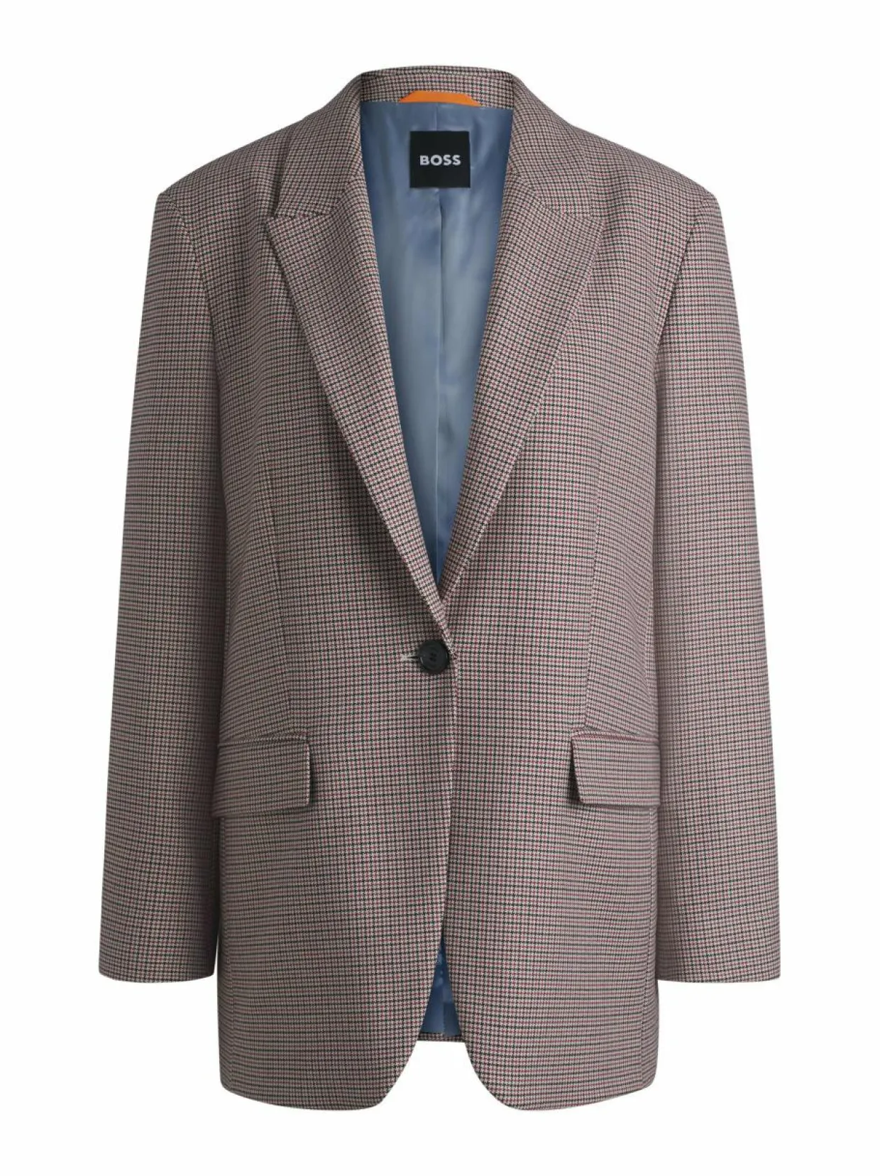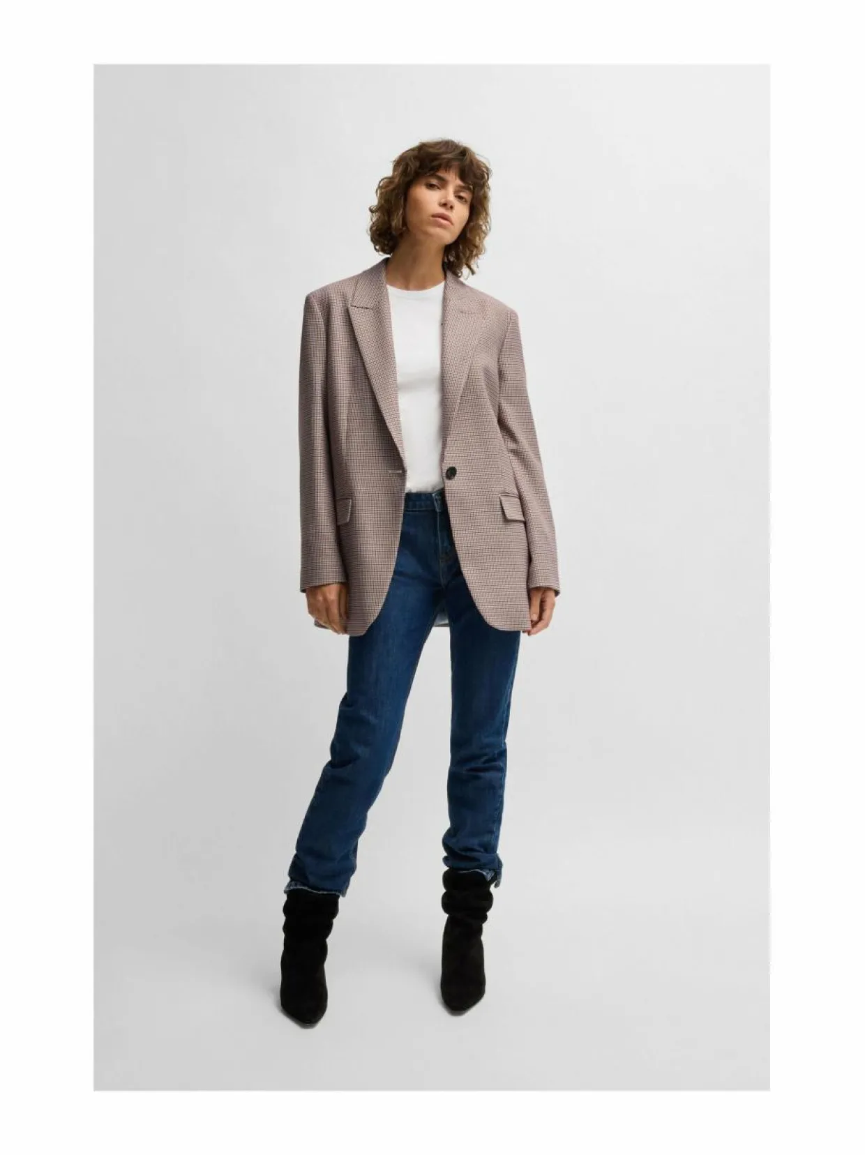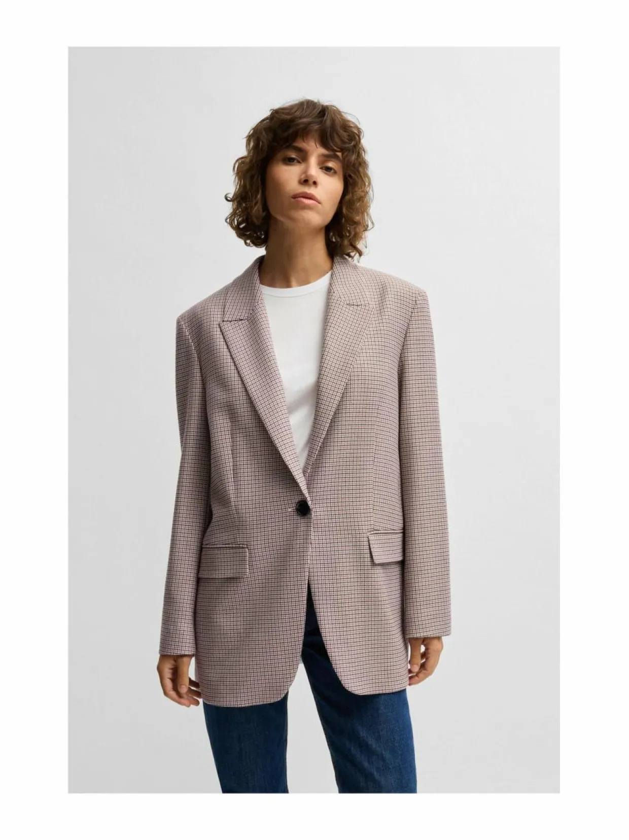 Ruudullinen Boss-merkin rento, yksirivinen takki on valmistettu pehmeästä, joustavasta materiaalista. Takissa on kontrastivärinen vuori ja se on suunniteltu rentoon istuvuuteen. Takissa on yksi napin sulkeminen ja se on täydellinen valinta arkikäyttöön. Takki sopii erinomaisesti yhdistettäväksi farkkujen ja t-paidan kanssa. Materiaali on pehmeä ja miellyttävä iholla sekä lisäksi se on myös hengittävä ja kestävä. Takki on täydellinen valinta niille, jotka haluavat tyylikkään ja mukavan takin arkikäyttöön.