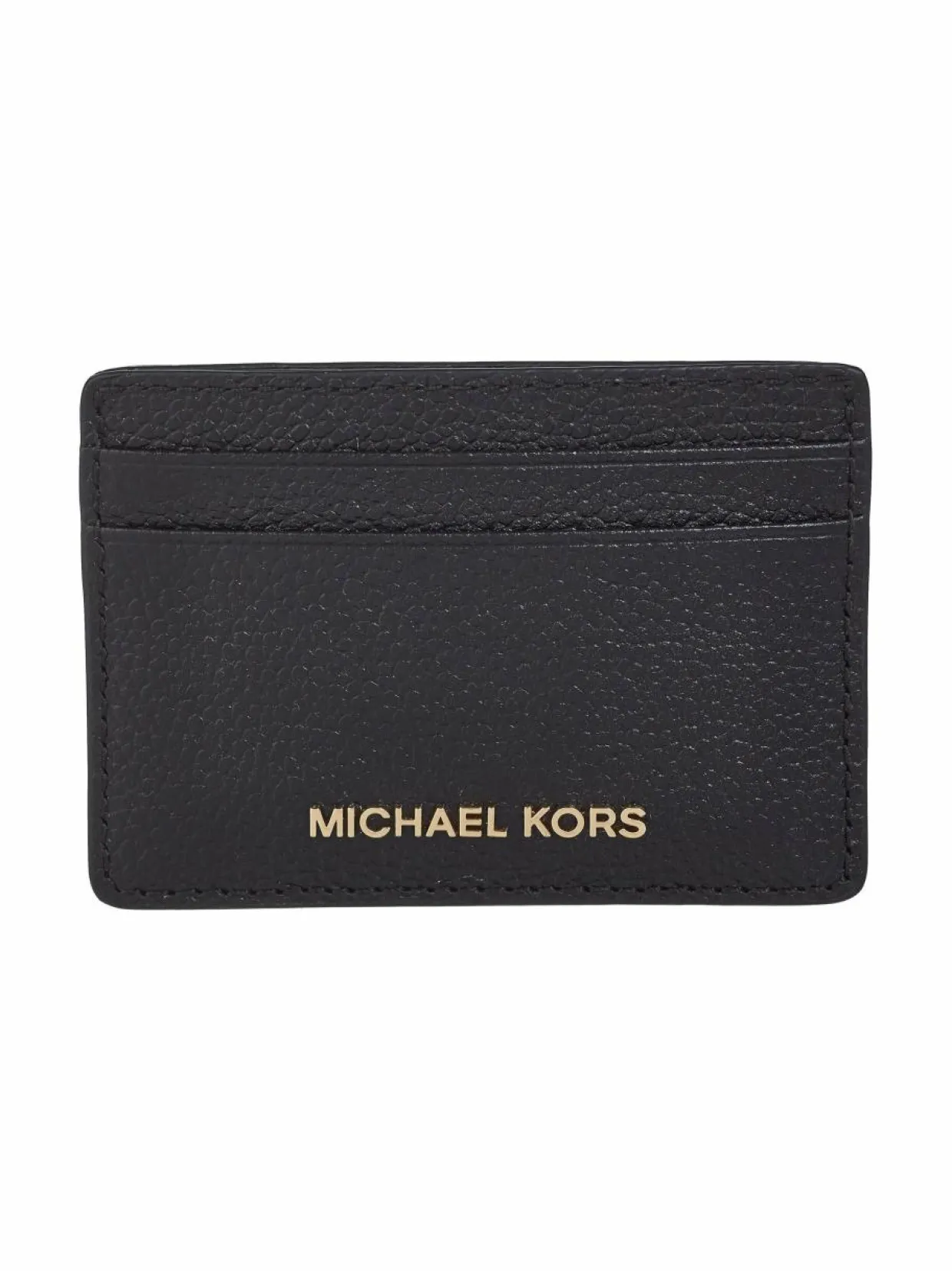 Pehmeästä, pintakuvioidusta nahasta valmistetussa Michael Michael Kors -korttikotelossa säilytät tärkeät korttisi hyvässä järjestyksessä. Litteä kotelo on helppo sujauttaa mukaan taskuun tai laukkuun. Kotelossa on neljä korttipaikkaa ja syvempi tasku keskellä. Metallinen logoteksti viimeistelee ilmeen.