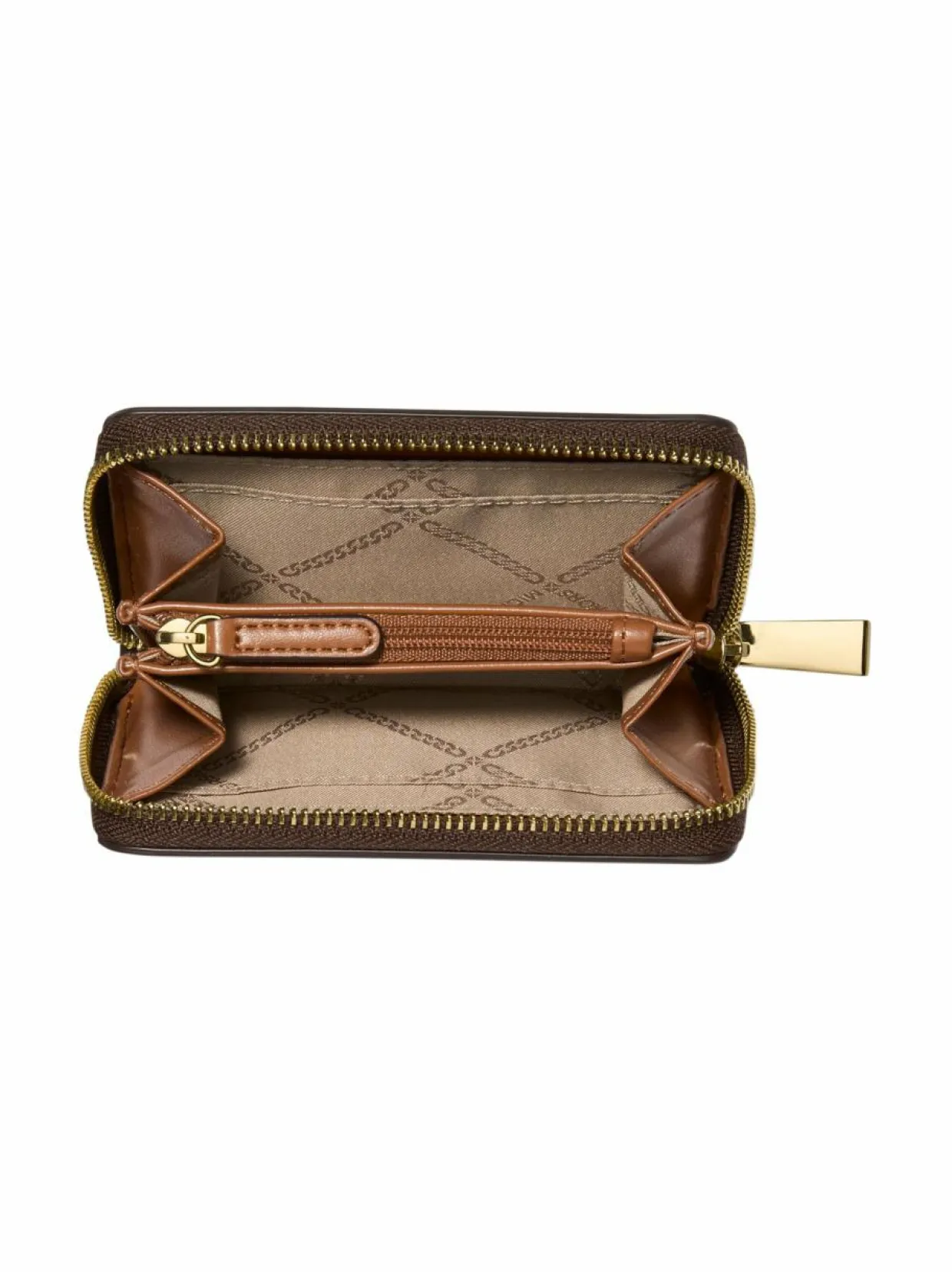 Kompakti tekonahkainen lompakko Michael Michael Kors tuotemerkiltä. Korttilompakko suljetaan vetoketjulla. Sisältä löydät keskeisen kolikkotaskun sekä kaksi pääosiota, jossa on yhteensä 4 korttipaikkaa.