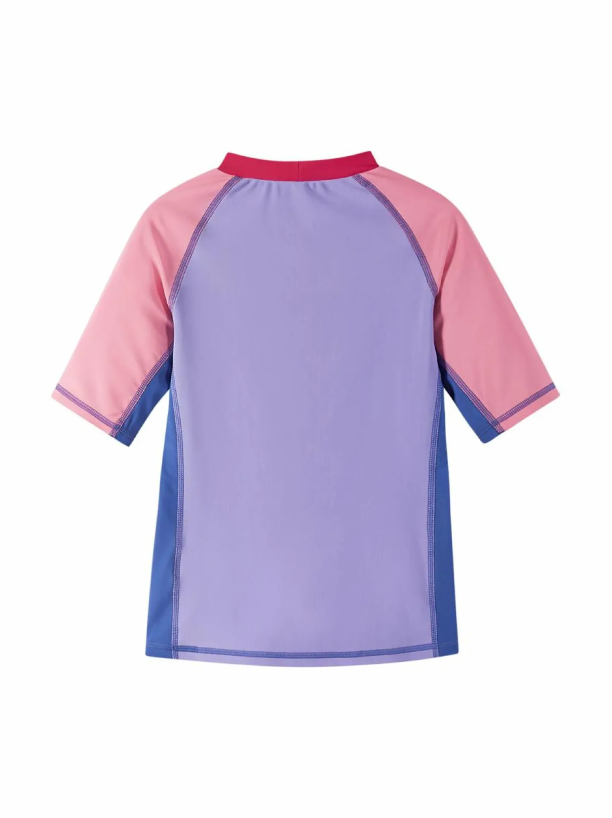 Materiaali83 % polyesteri, 17 % elastaani Hoito-ohjeetHienopesu 40 °C ValmistusmaaSri Lanka Väri5450 BLOOMING LILAC Avainsanatlasten uimapaita, lasten uv suojattu paita, reima, joonia