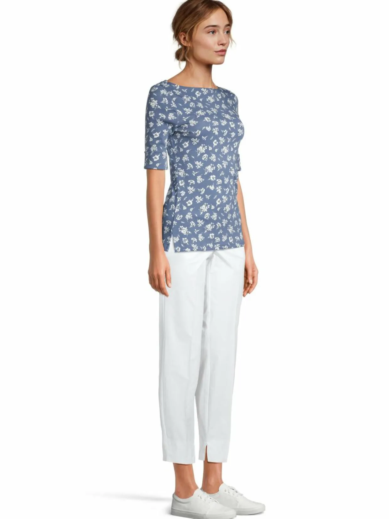 Tätä Lauren Ralph Laurenin paitaa koristaa kukkakuviointi. Mallissa on elegantti venepääntie, pienet sivuhalkiot ja puolipitkät hihat. Paita sopii moniin arjen tilanteisiin. Materiaalina on joustava puuvillatrikoo.