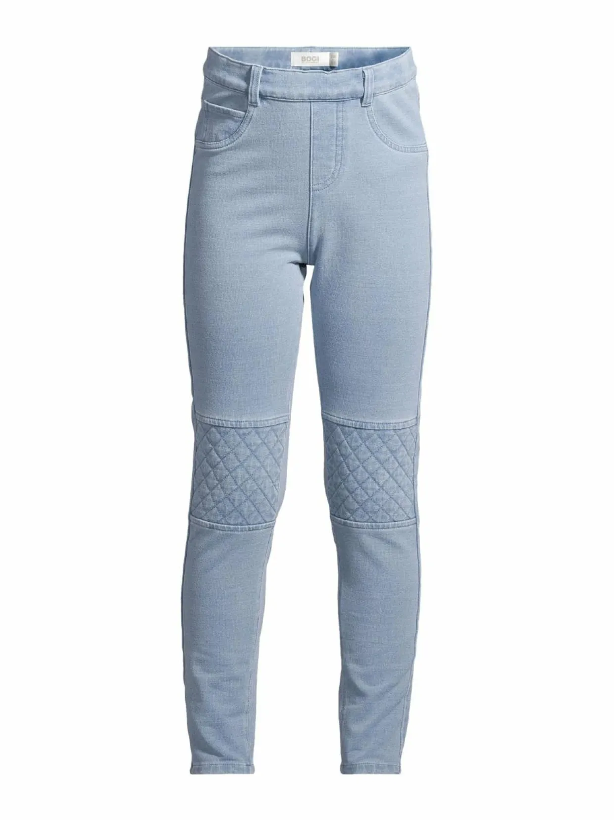 Julia-leggingsit Bogi-brändiltä joustavalla vyötäröllä. Nämä leggingsit on valmistettu pehmeästä ja joustavasta jerseydenim-kankaasta, joka jäljittelee farkkujen ulkonäköä, mutta tarjoaa leggingsien mukavuuden. Housuissa on vyölenkit, valesepalus ja taskut. Materiaalina on hieman joustava puuvilla, joka takaa erinomaisen istuvuuden ja liikkumavapauden. Vyötärön kireys on sisäpuolelta napeilla ja kuminauhalla säädettävä. Tikatut polviosiot lisäävät tyylikästä yksityiskohtaa.