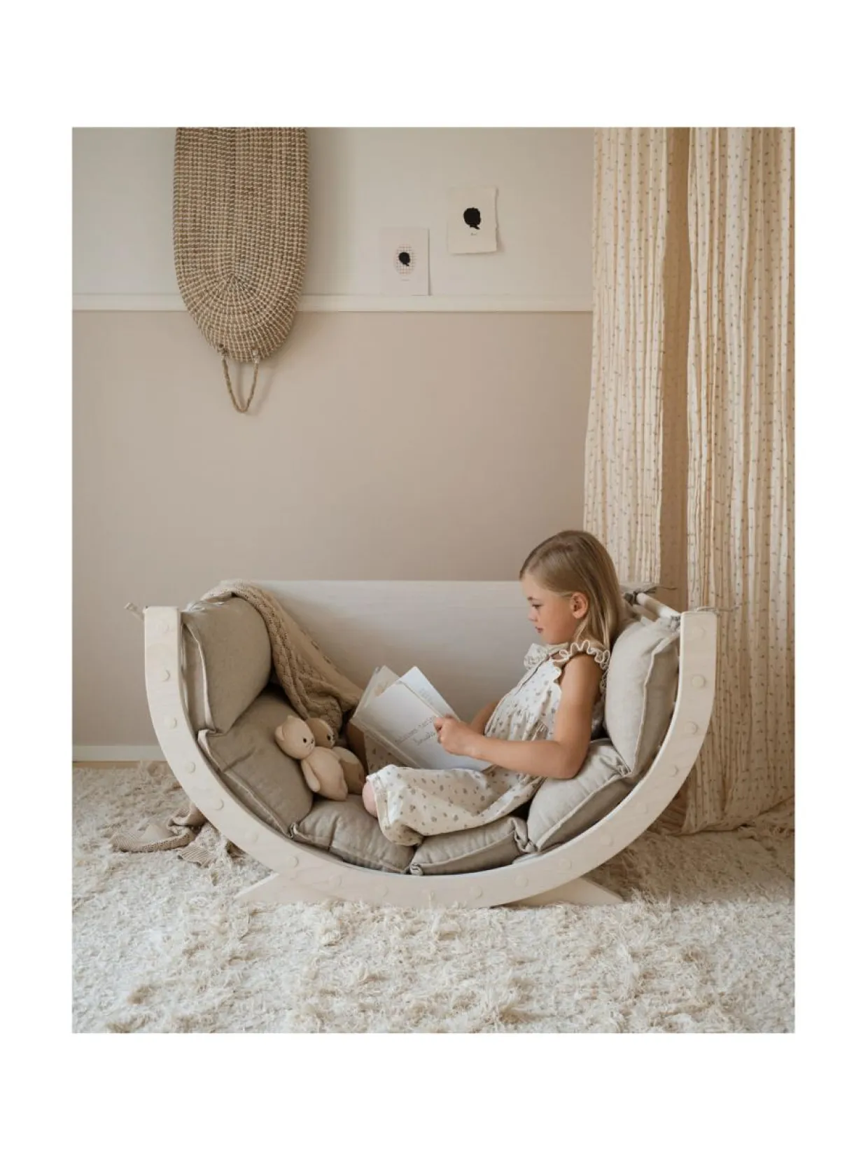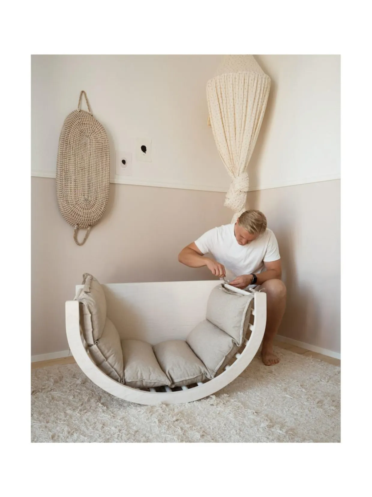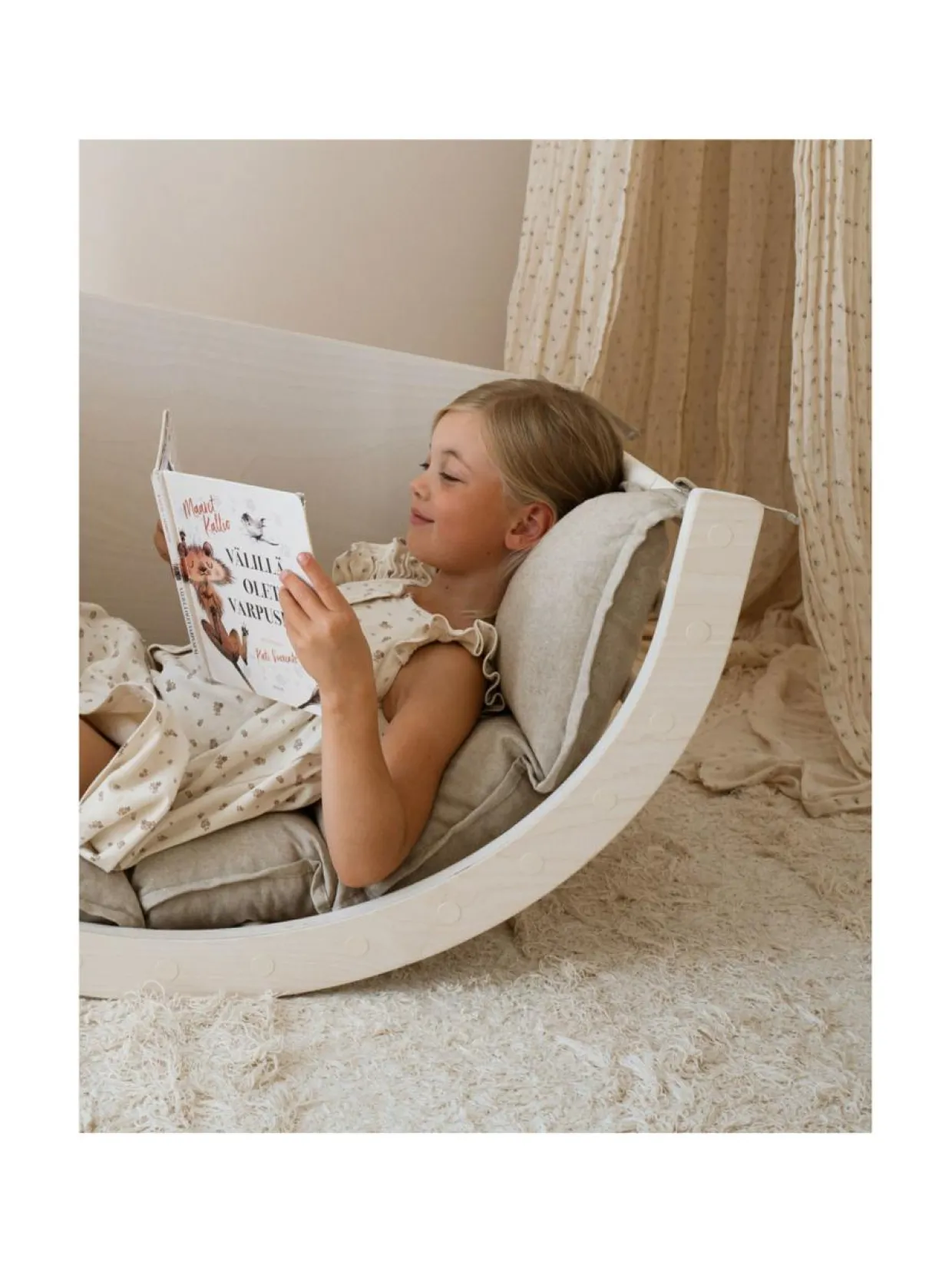 Tuotenumero1534036 MateriaaliKangas: 87 % puuvilla (kierrätetty), 13 % polyesteri (kierrätetty) | Täyte: 60 % polyesteri (kierrätetty), 40 % vaahtomuovirouhe (saattaa sisältää yksittäisiä untuvia Hoito-ohjeetHienopesu Pesulämpötila40 °C Takuu24 kk VäriHIEKKA Koko150 x 55 x 13,5 cm Avainsanatpehmuste, kiipeilykaari, kiikki, luoto, kotimainen, lasten pehmuste