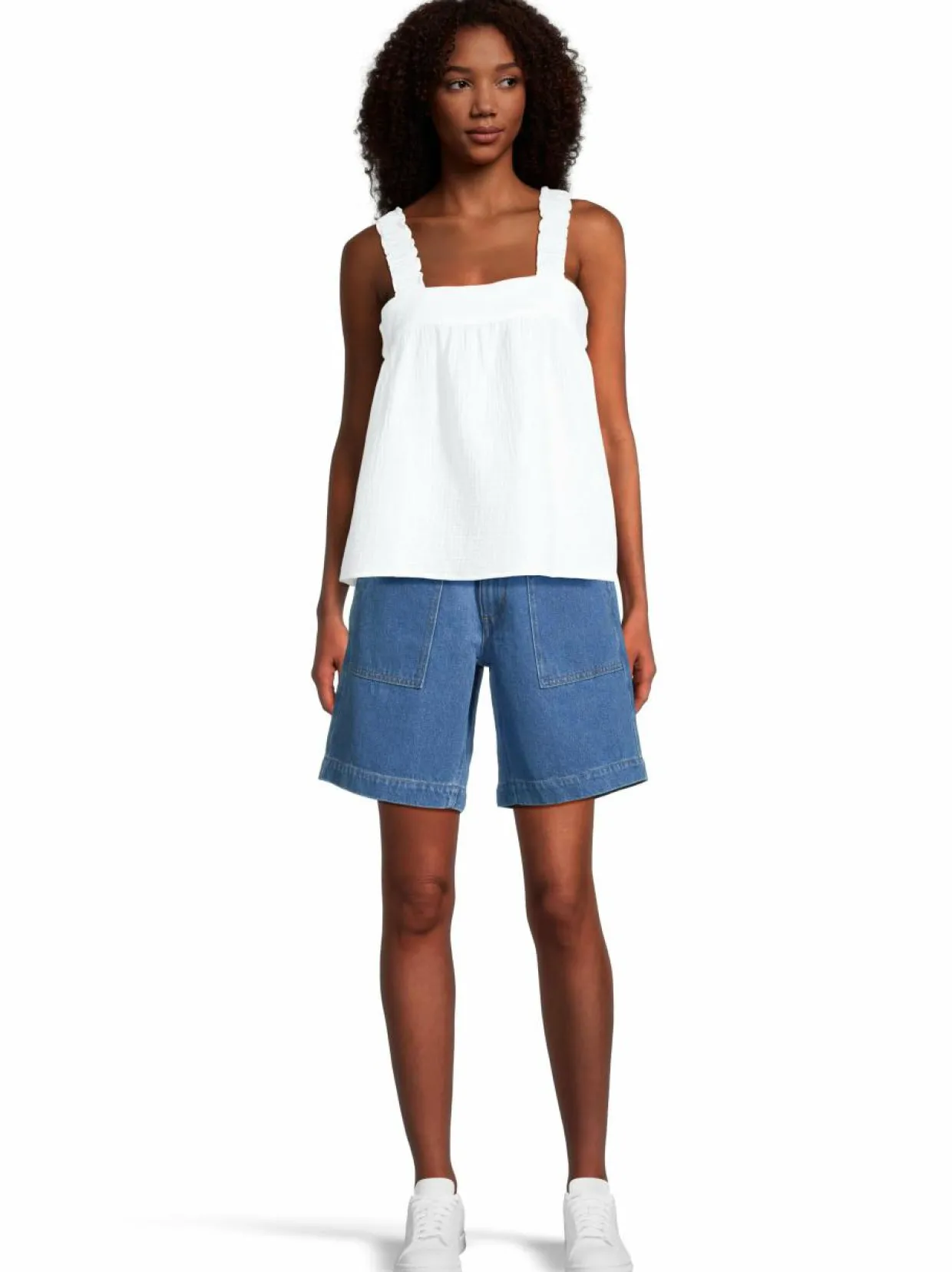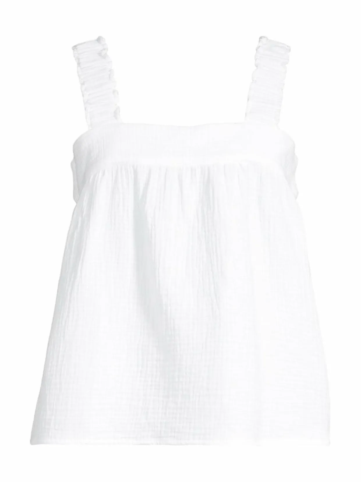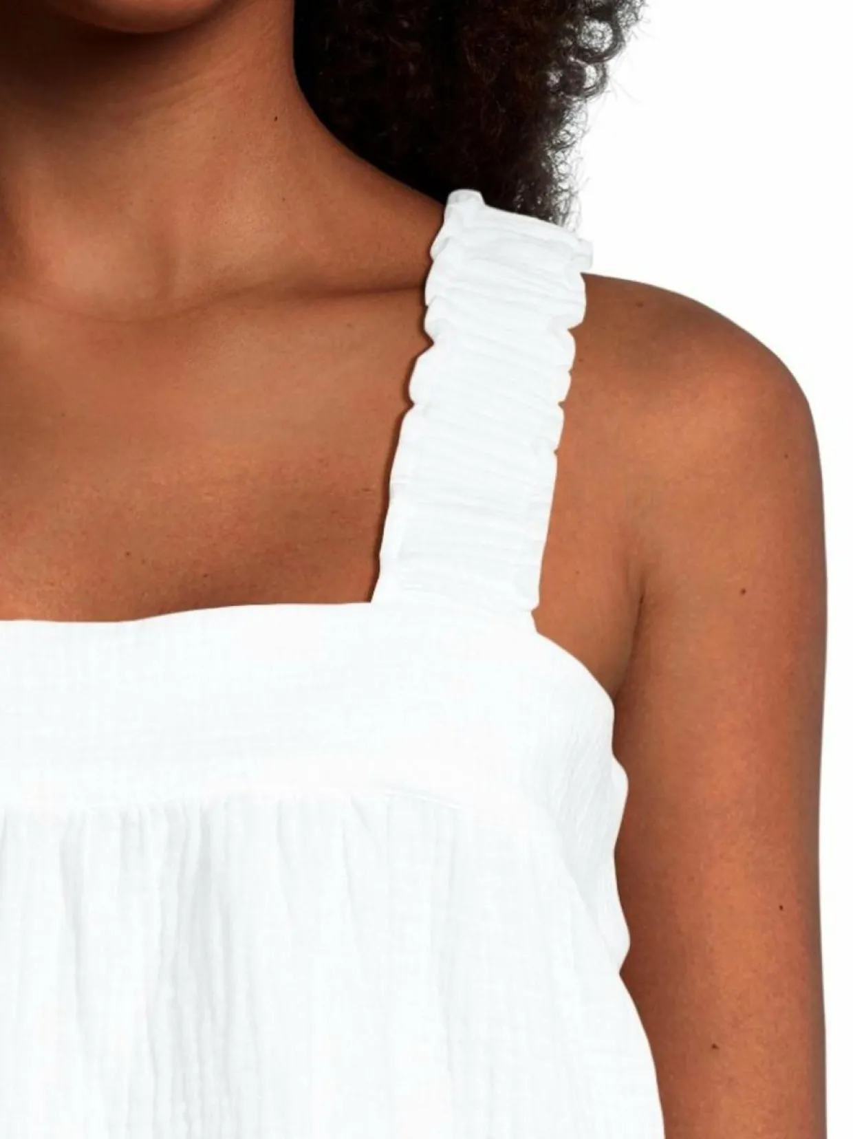 Kevyt ja mukava toppi, jossa on leveät olkaimet ja rennon mukava istuvuus. Topin materiaali on pehmeää ja hengittävää puuvillaa, joka on ihanteellinen valinta lämpimiin päiviin ja -iltoihin. Toppi sopii hyvin myös juhlavampaan tilaisuuteen yhdessä tyyliin sopivien asusteiden kanssa.Puuvilla on luonnollinen materiaali, joka on pehmeä ja hengittävä sekä lisäksi, se on myös kestävä ja helppohoitoinen.