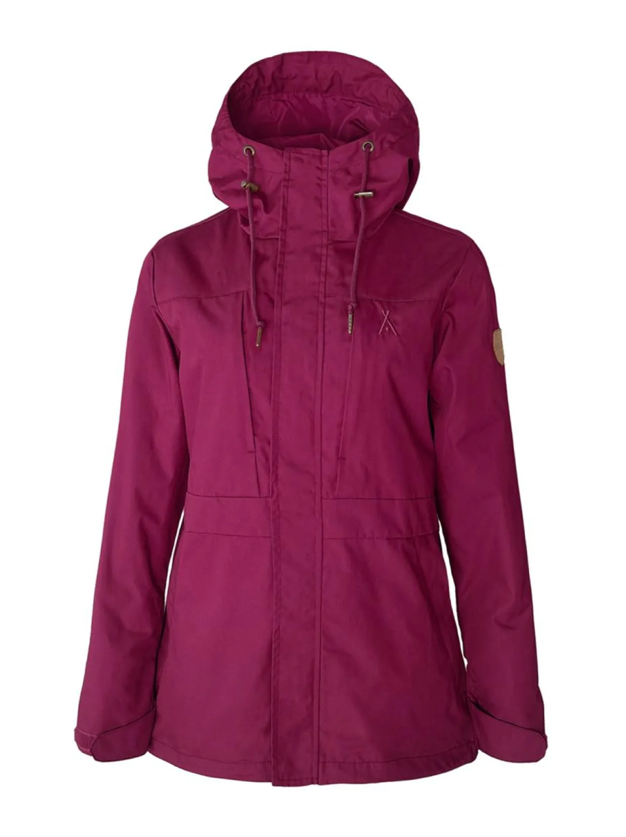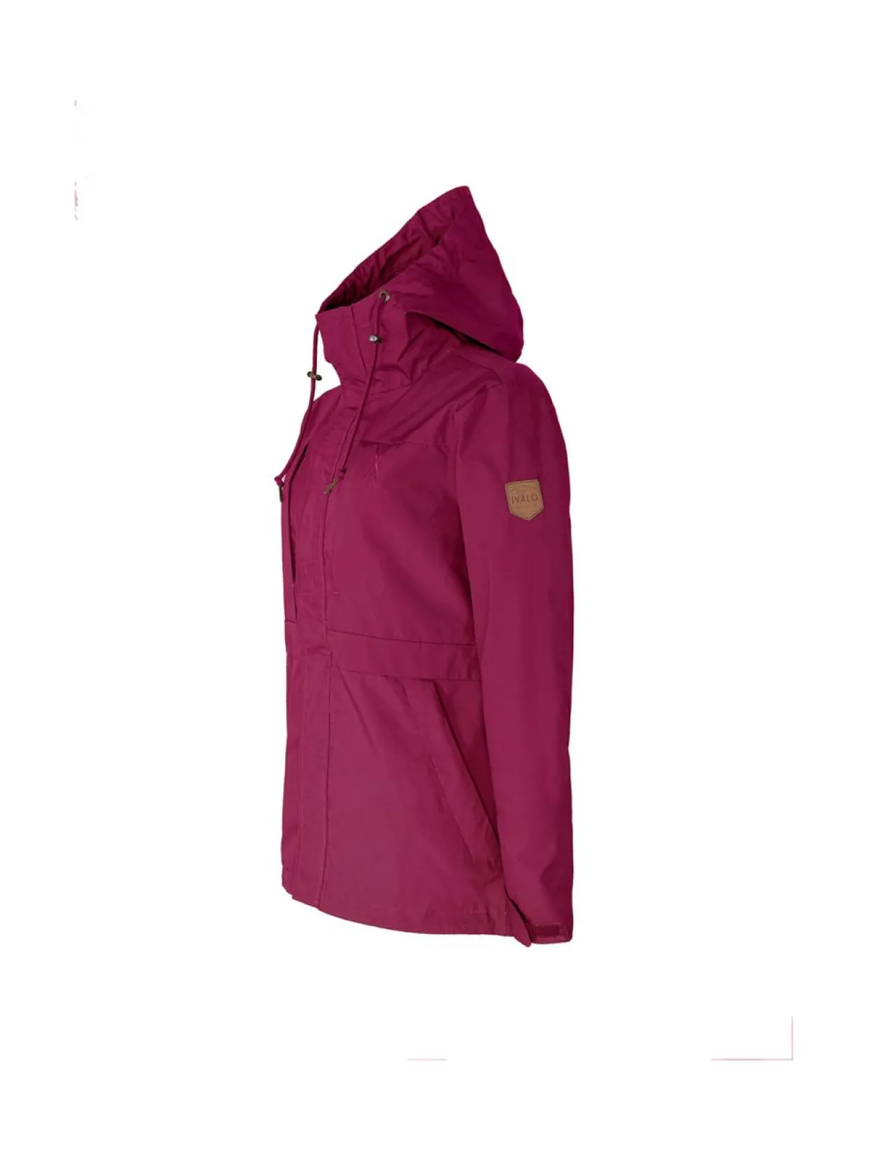 Ivalo Keväjärvi – Naisten takki vapaa-aikaan ja ulkoiluun. Takin päällikangas on sekoite kierrätettyä polyesteriä sekä orgaanista puuvillaa (65%/35%) ja se on kosteussuojattu ympäristöystävällisellä PFC-vapaalla vedenhylkivyyskäsittelyllä. Takin istuvuutta voi säätää hupusta ja helmasta nyörillä sekä hihansuista tarranauhalla. Neljä vetoketjullista taskua. Rintatasku vuorin puolella.