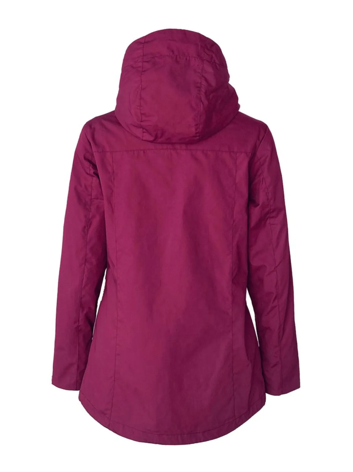 Pesuohje: Konepesu 40 astetta. Pese samanväristen kanssa nurinkäännettynä. Sulje vetoketjut ja tarrat. Käytä pesuainetta, jossa ei ole valkaisuaineita. Älä käytä huuhteluainetta.Materiaali65% Kierrätetty polyesteri 35% Orgaaninen puuvilla Pesulämpötila40 °C VäriHERUKKA AvainsanatNaisten takit, ulkoilutakit, outdoor-takit
