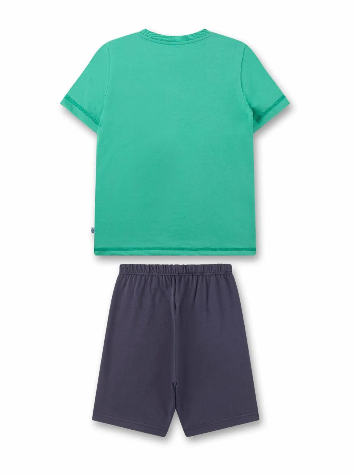 Sanettan 2-osainen yöasu koostuu t-paidasta ja pyjamashortseista. Trikoopaidan edessä on betoniauton printti. Shortseissa on joustava vyötärö. Setti on suunniteltu normaaliin istuvuuteen ja valmistettu pehmeästä puuvillasta.