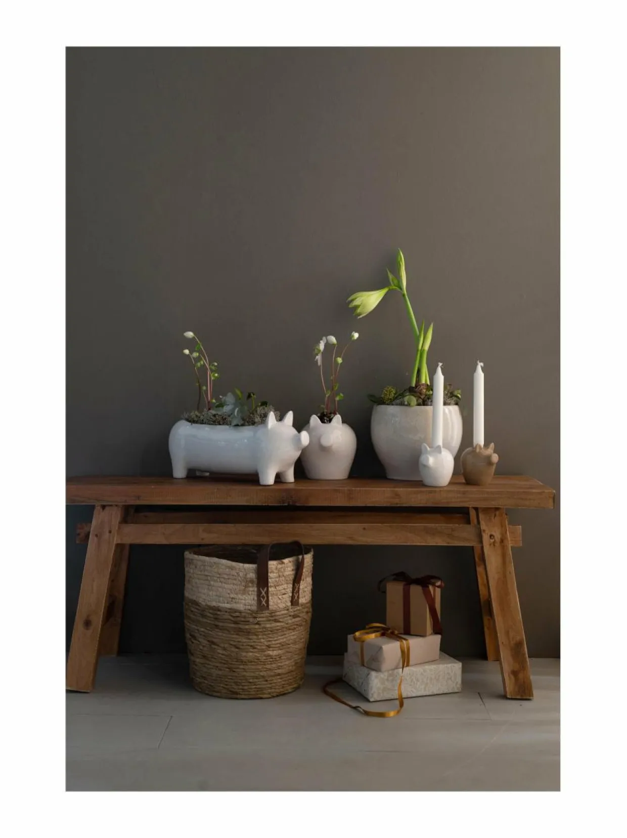 Ruukun mitat, 27 cm pituus, 9 cm leveys ja 11 cm korkeus, tekevät siitä kompaktin mutta tilavan valinnan pienille kasveille, yrteille tai koriste-esineille. Sen yksityiskohtainen muotoilu ja hillitty viimeistely sulautuvat helposti erilaisiin sisustustyyleihin, oli kyseessä keittiö, olohuone tai lastenhuone.Tuotenumero169831538 MateriaaliKeramiikka Kokotiedot27 x 9 x 11 cm ValmistusmaaKiina VäriWHITE MELANGE Koko27 x 9 x 11 cm AvainsanatWikholm Form, ruukku, kukkaruukku, possu