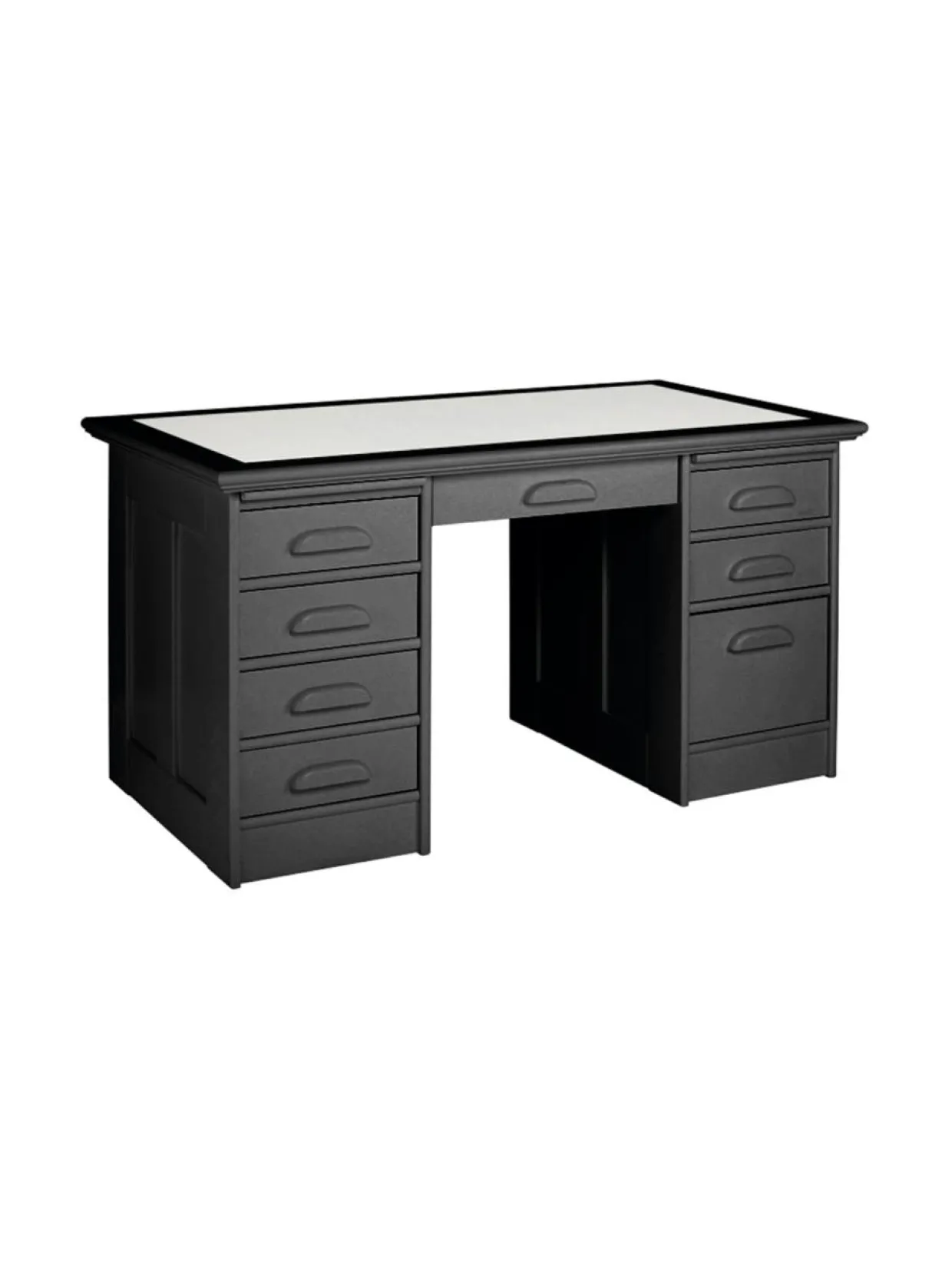 Tuotteen mitat ovat: leveys 140cm syvyys 76cm korkeus 77cmTuotenumero616013 Materiaalikoivu, vaneri, tekstiilinahka Hoito-ohjeetNihkeäpyyhintä nukkaamattomalla siivousliinalla VäriMUSTA AvainsanatTyöpöytä, Kirjoituspöytä
