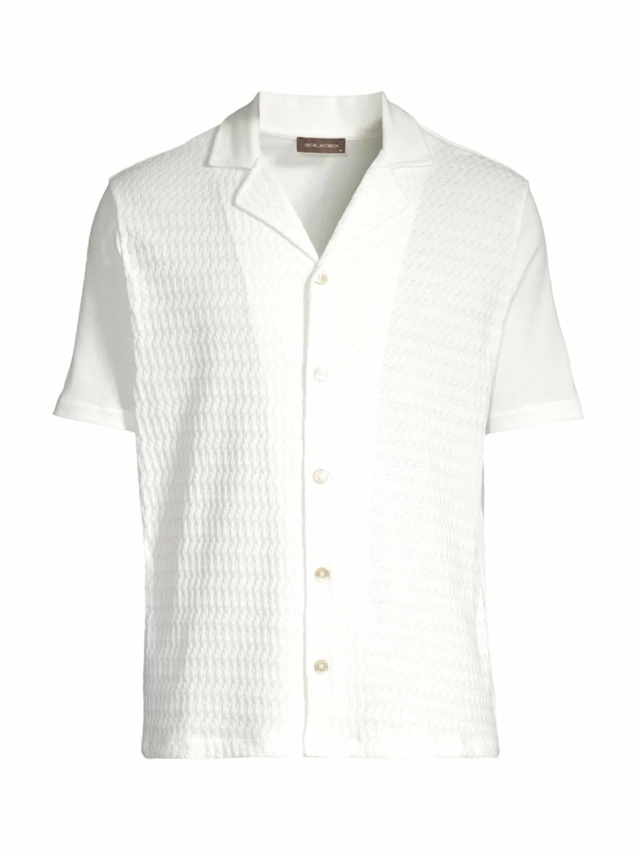 Oscar Jacobsonin Kirk-neulepaita on valmistettu 100 % puuvillasta. Se on lyhythihainen ja siinä on paitakaulus. Neulepaita on mukava ja hengittävä ja se sopii täydellisesti arkikäyttöön. Sitä koristaa edessä struktuuri. Neulepaidassa on myös napit edessä.