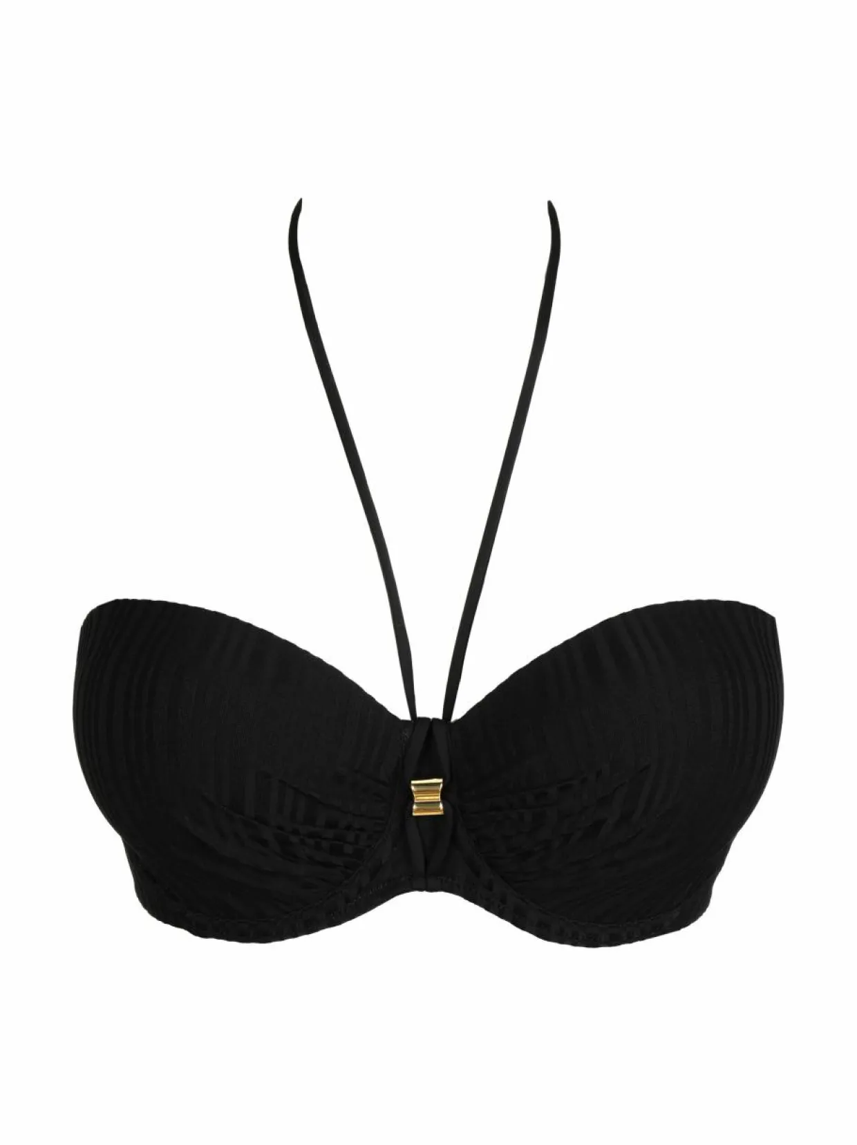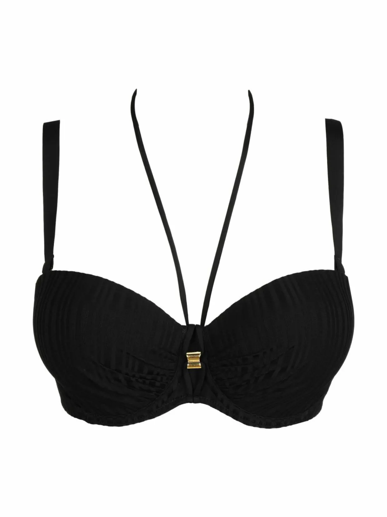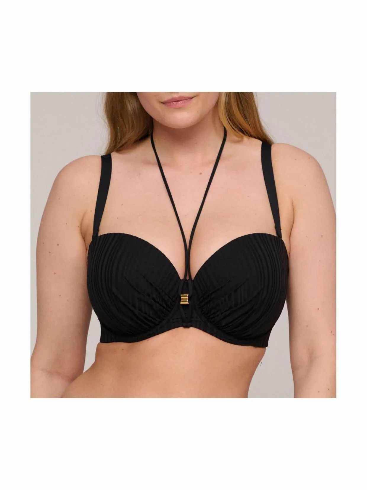 Primadonnan minimalistinen ja ajaton bikiniyläosa. Tässä kaarituellisessa bikininyläosassa on topatut kupit, jotka tarjoavat erinomaisen tuen myös ilman olkaimia. Bikinintoppi korostaa kehon parhaita puolia ja tarjoaa imartelevan leikkauksen. Sitä voidaan käyttää säädettävillä olkaimilla tai kokonaan ilman, mukana tulee myös koristenauha. Hihnat ja koristeellinen nauha kaulan ympärillä voidaan irrottaa. Valmistettu kevyestä ja joustavasta ribbikankaasta.
