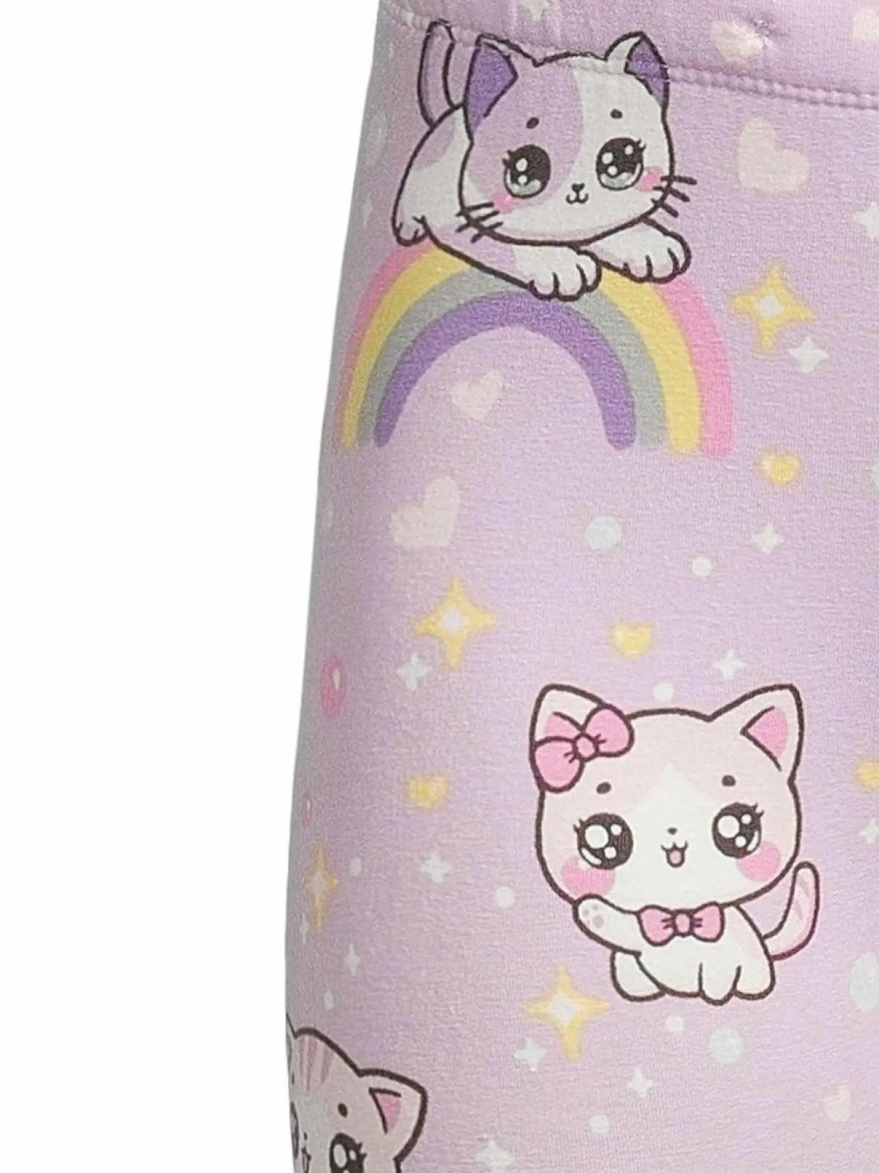 Mukavat leggingsit lapsille. Kissakuvioisissa housuissa on pehmeäksi harjattu sisäpinta ja säädettävä joustovyötärö. Tuote sisältää 75 % luomupuuvillaa ja 20 % kierrätettyä puuvillaa.