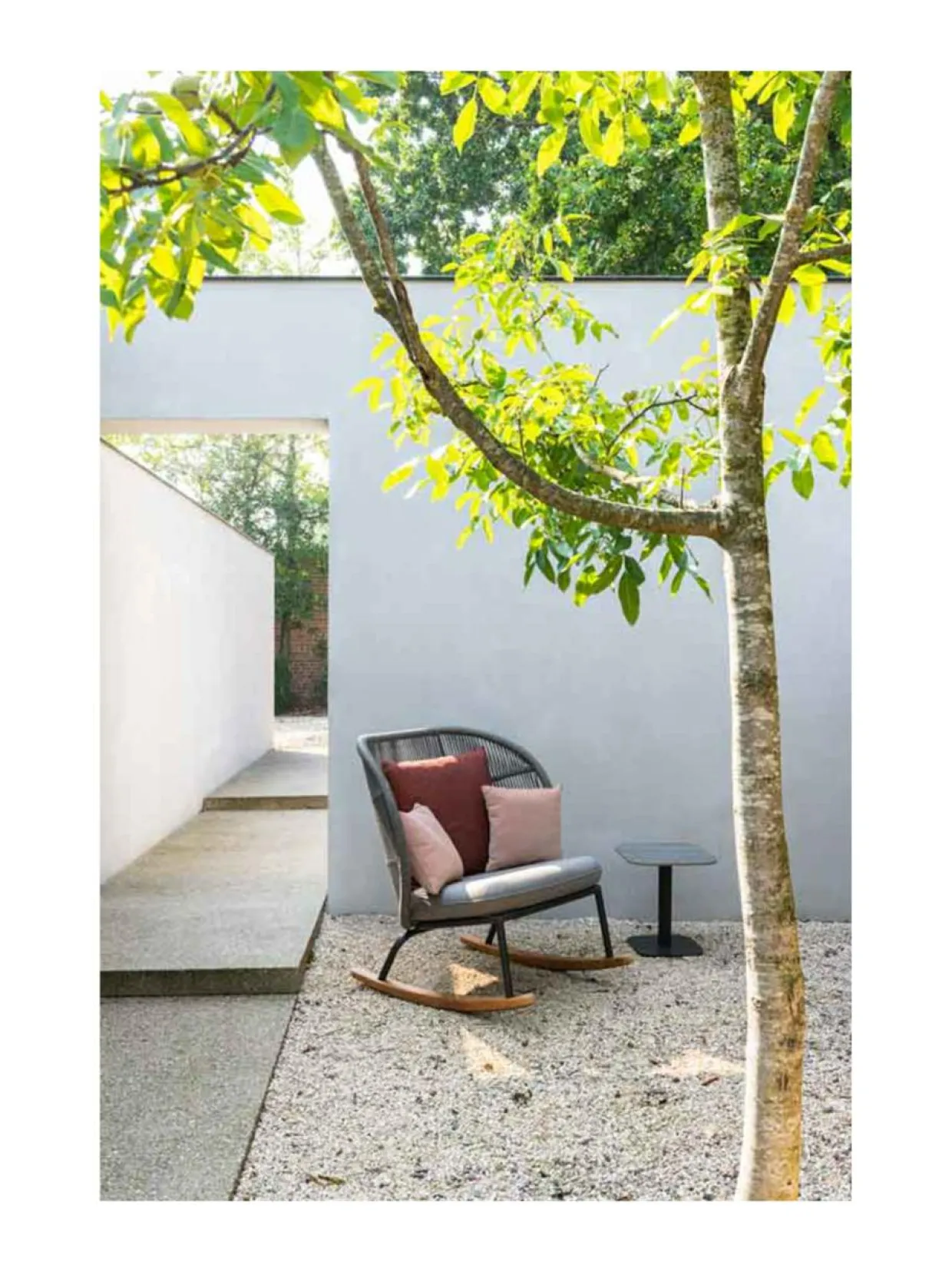Tunne olosi mukavaksi Kodo-keinutuolissa ja uppoudu syviin mukaviin tyynyihin. Sen korkea polypropeeniköysi ja upea tiikkipohja yhdistävät nykyaikaisen muotoilun mukavuuteen liikkua rauhoittavasti edestakaisin.