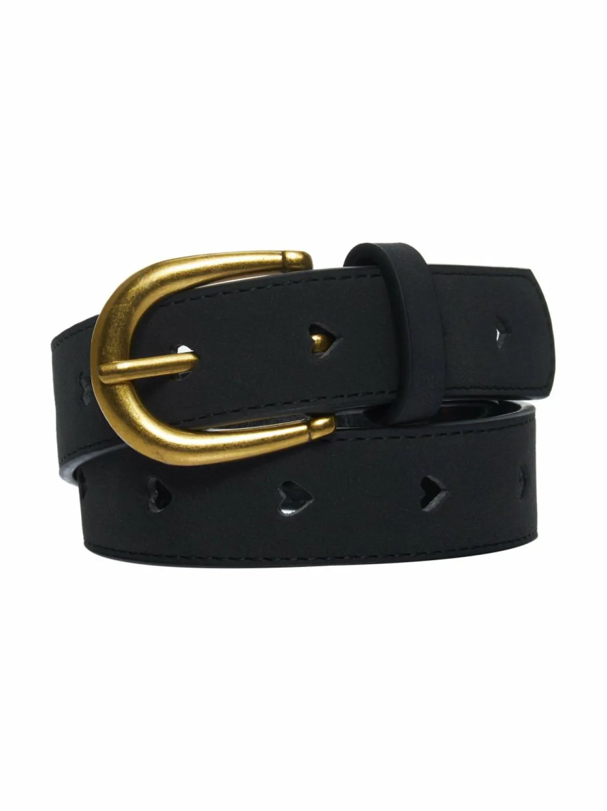 Kids Only -merkin vyö on valmistettu pehmeästä keinonahkasta. Vyössä on kullanvärinen solki, jossa on sydämen muotoinset vyönreijät. Vyö sopii erinomaisesti farkkujen, shortsien ja hameiden kanssa. Vyö on valmistettu polyesteristä, joka on pehmeä ja mukava käyttää. Polyesteri on myös kestävä ja helppohoitoinen materiaali. Se ei kutistu eikä rypisty helposti.
