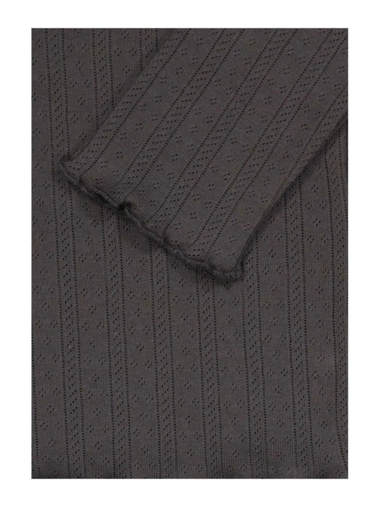 Pitkähihainen ja hieman vajaamittainen paita aaltoreunalla. Paidassa on kauttaaltaan pitsimäistä reikäkirjontakuviota. Materiaalina ihoystävällinen puuvilla.