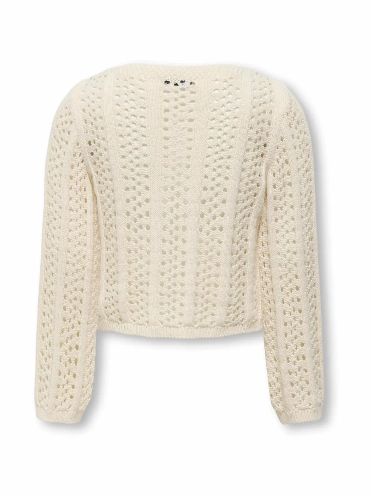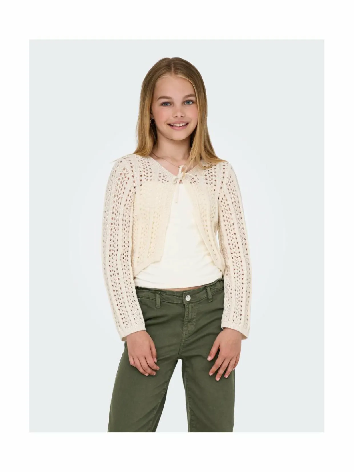 KIDS ONLY KogMarina -virkattu neuletakki on ihanteellinen valinta kevään ja kesän lämpimille päiville Tämä neule on valmistettu pehmeästä puuvillan ja polyesterin sekoituksesta, ja sen päämateriaali sisältää vähintään 20 % kierrätettyä puuvillaa. Neuleen materiaali tuntuu miellyttävältä ihoa vasten.