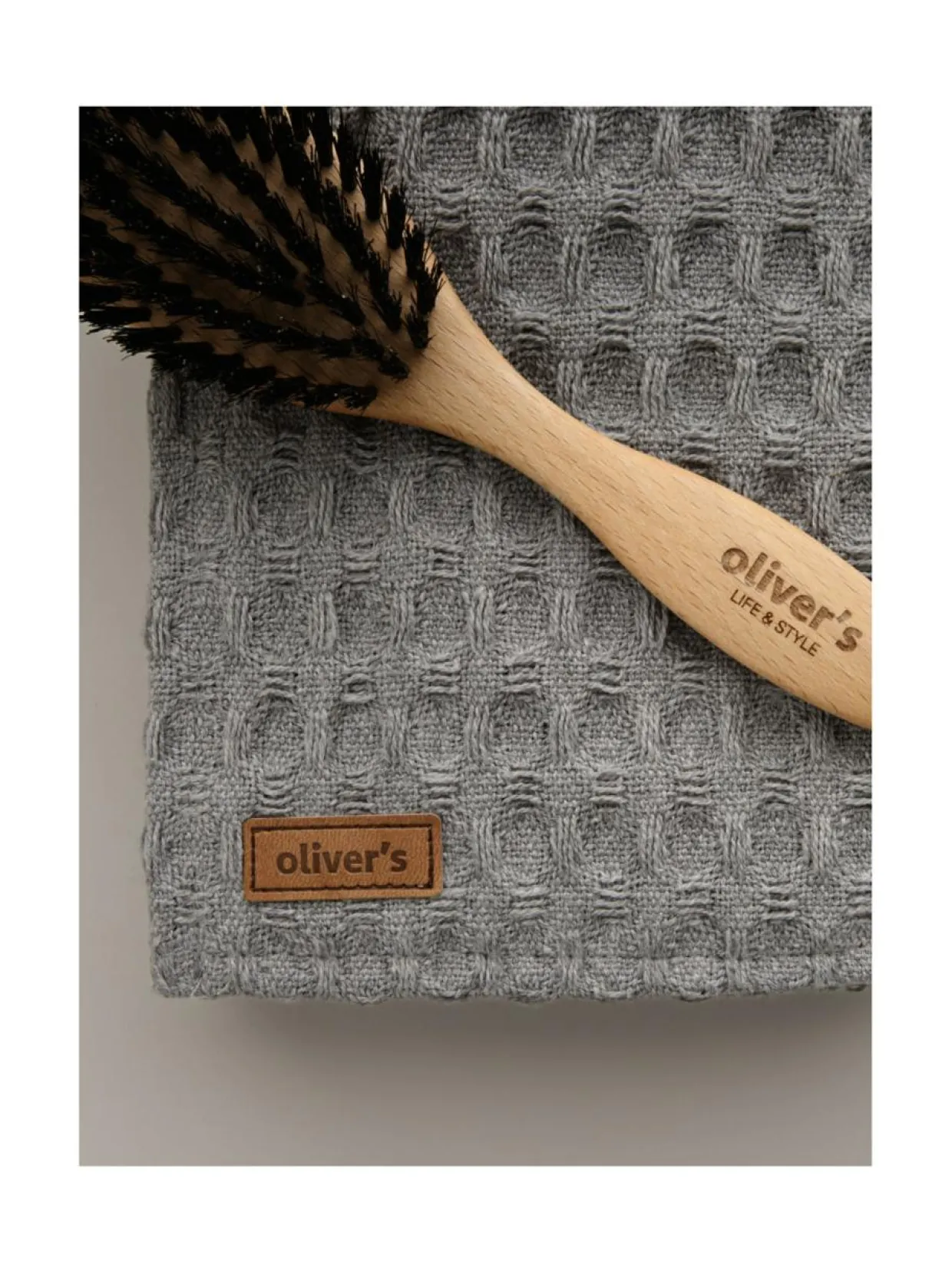 Oliver’s Life & Stylen koiran kylpypyyhe on valmistettu 75% kierrätetystä puuvillasta ja 25% polyesterista tehdystä vohvelikankaasta. Pyyhe on suunniteltu ja valmistettu Suomessa. Pyyhe imee hyvin kosteutta koiran turkista kylpyhetken tai pesun jälkeen. Se myös kuivuu nopeasti ja pyyhkeen saa helposti ripustettua kuivumaan sen pitkällä sivulla olevasta ripustinlenkistä. Pyyhkeen voi pestä koneessa 40 asteessa.